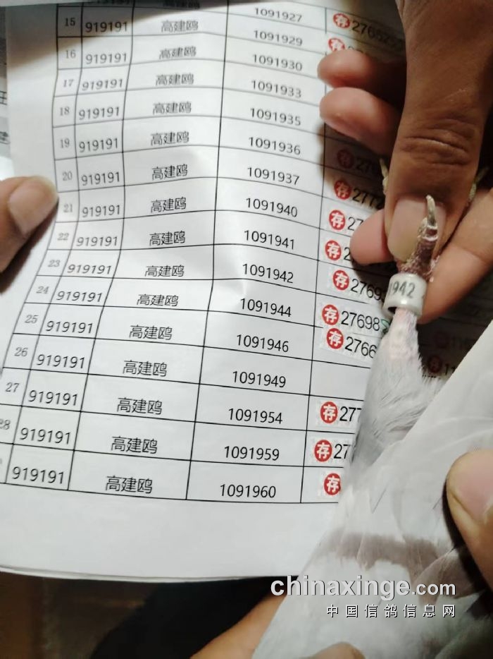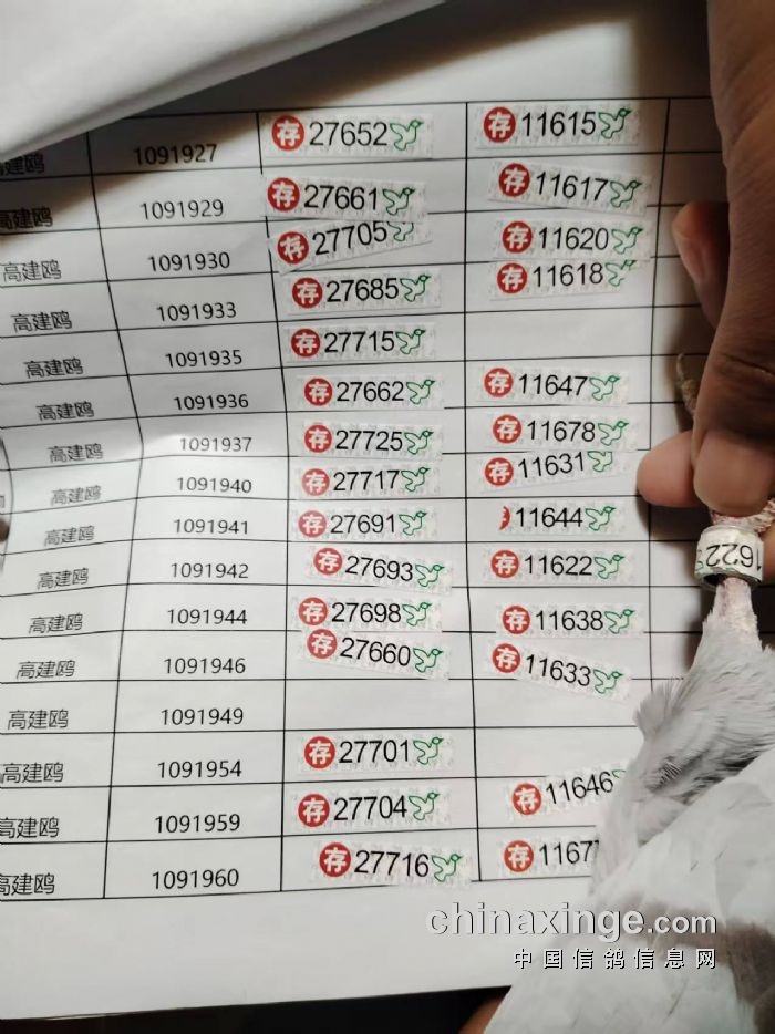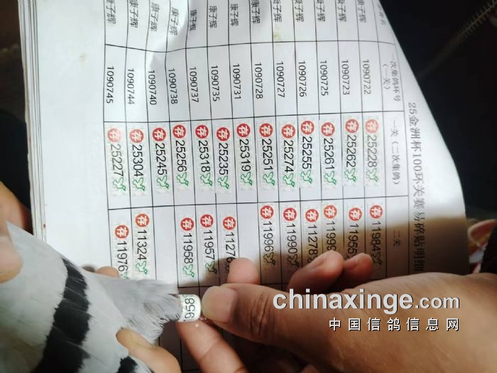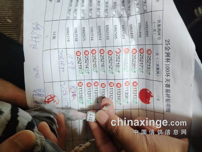 25年大兴“金洲杯”千元环一关有效归巢(按棚号)