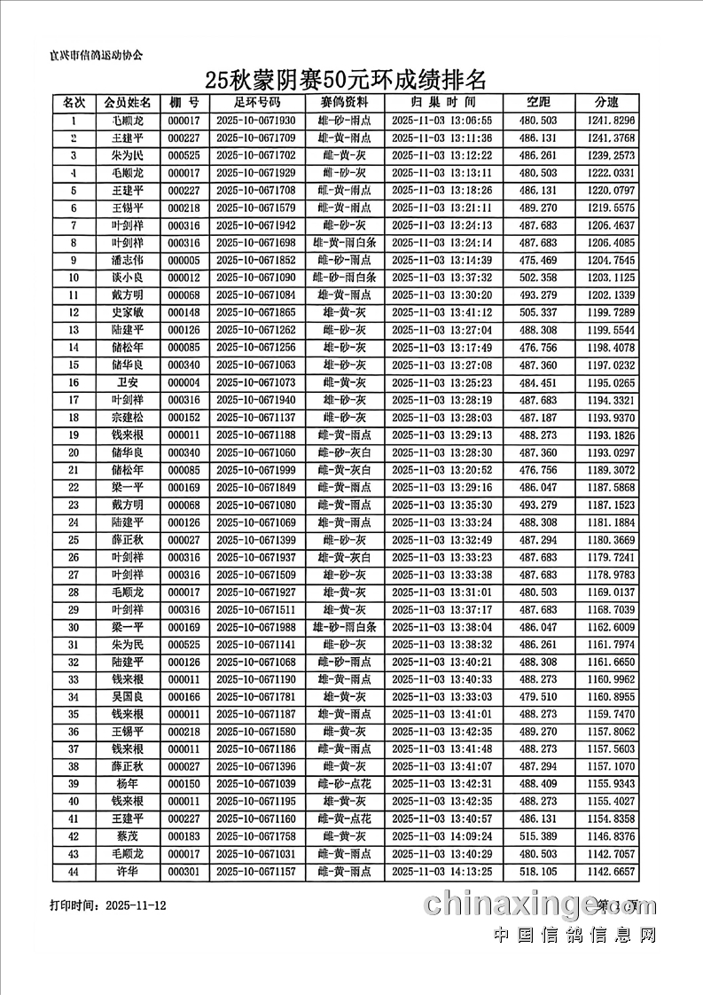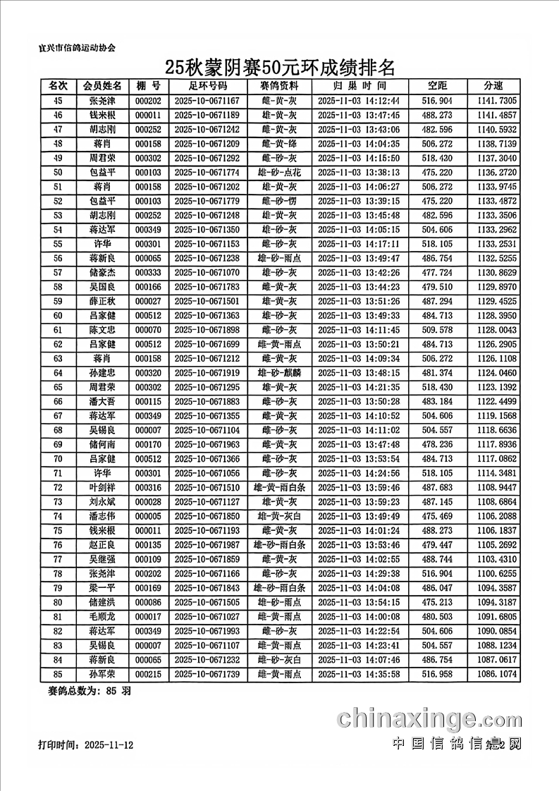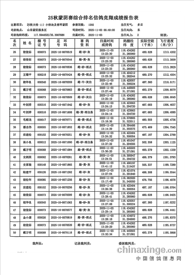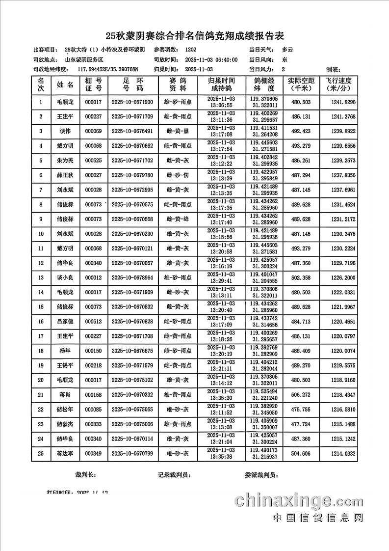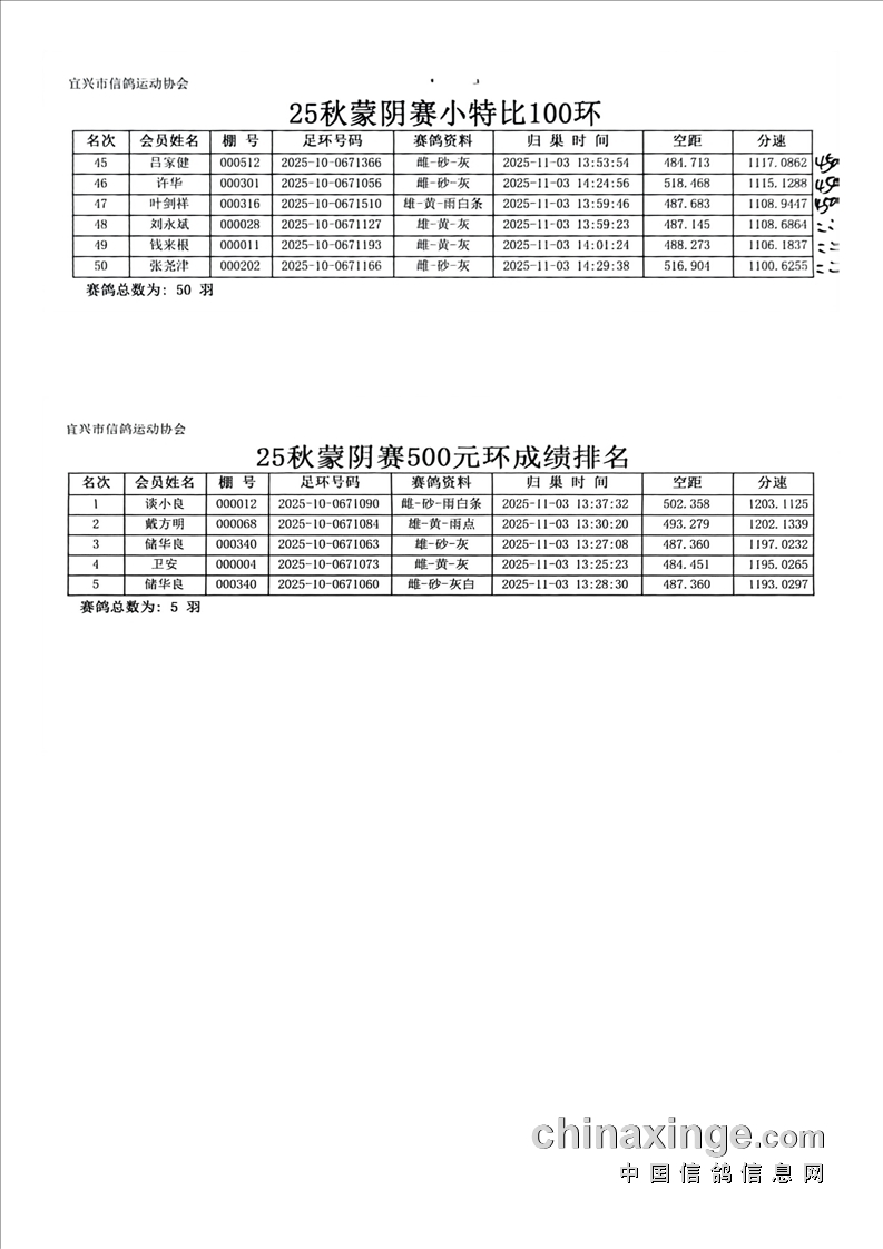 宜兴市信鸽协会2025年秋季第一关(大小特比及普环)蒙阴站比赛网址