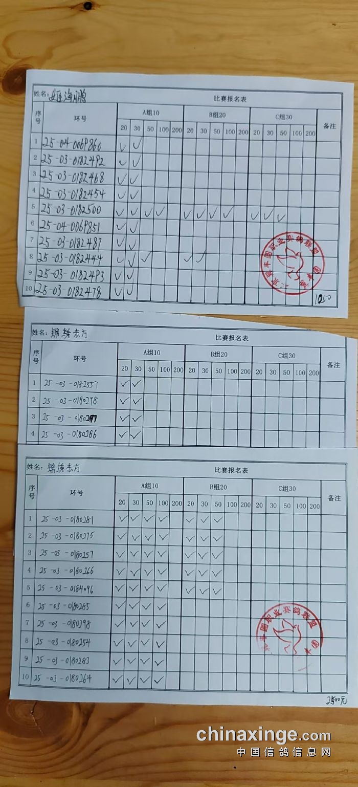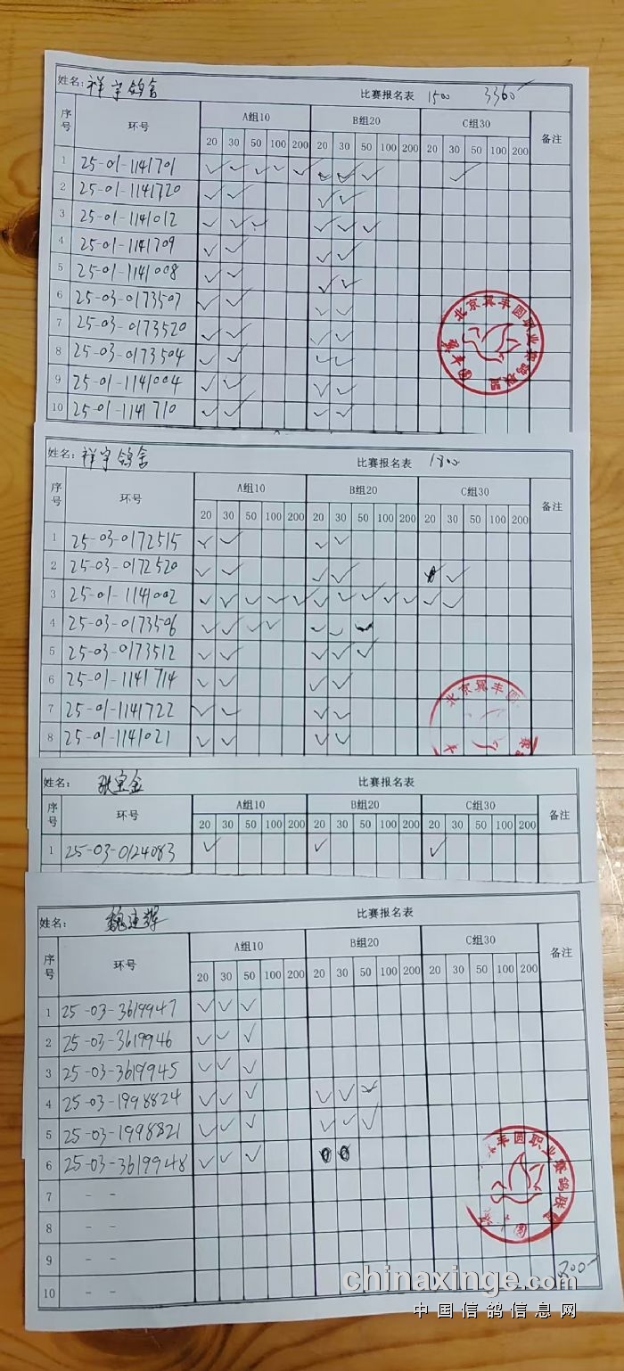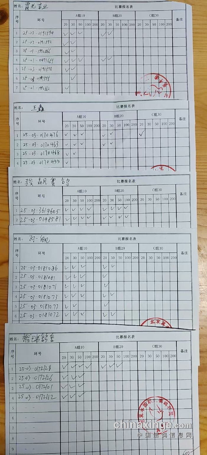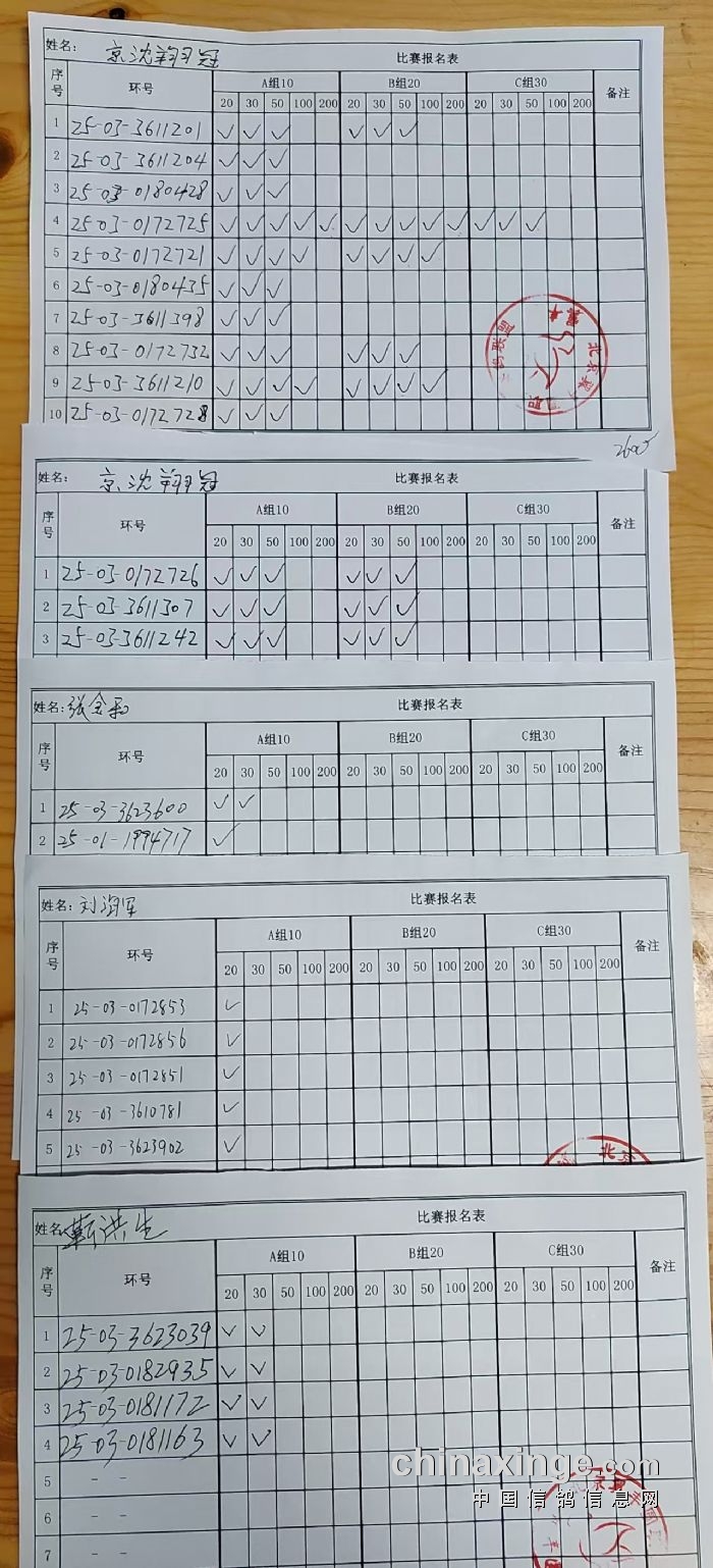 通州区信鸽协会2025年11月12日320公里现场参赛单