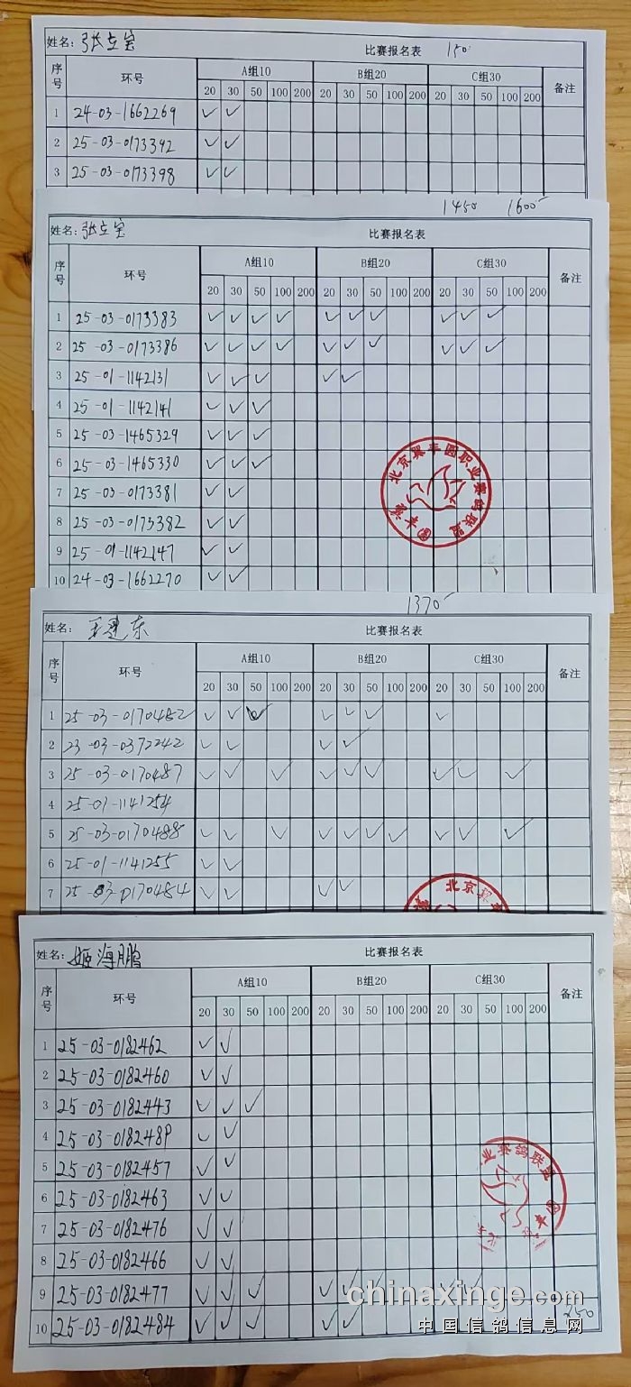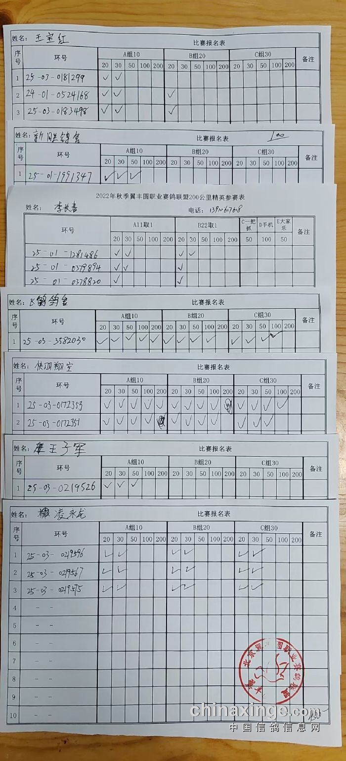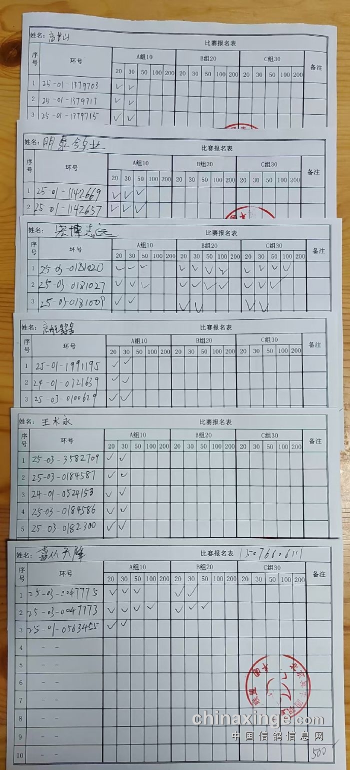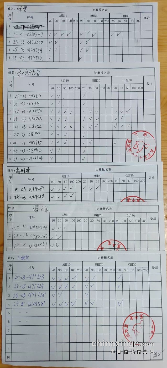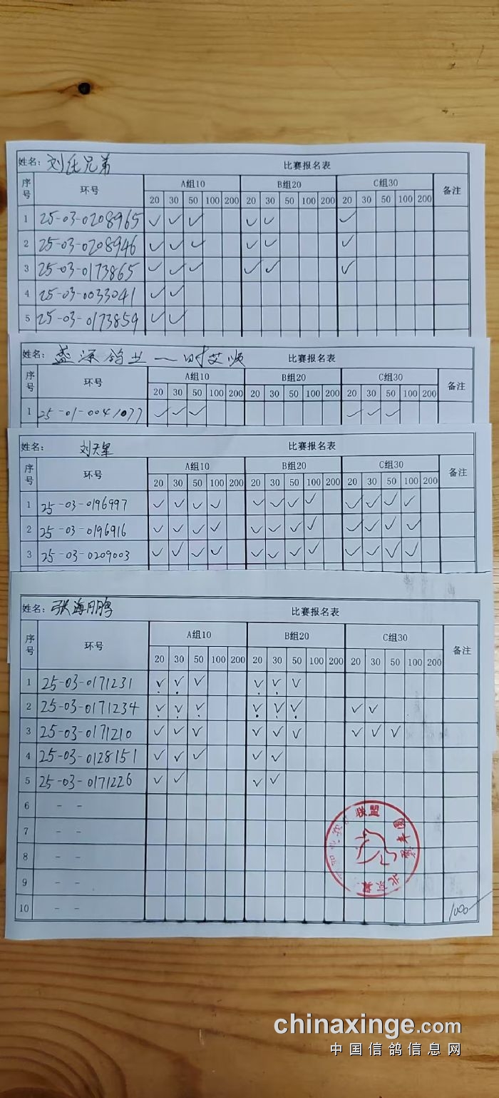 通州区信鸽协会2025年11月12日320公里现场参赛单