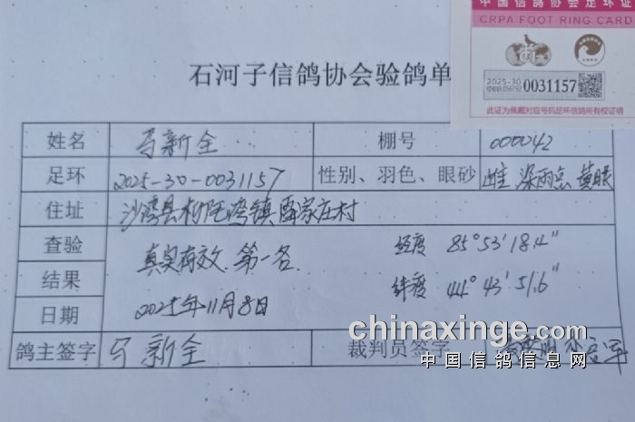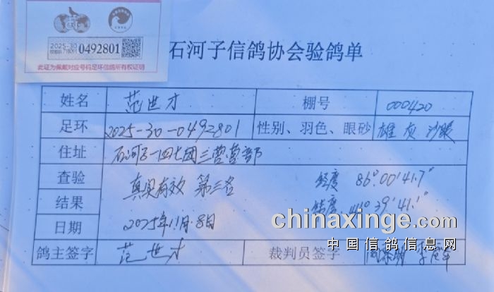 石河子信鸽协会2025秋季500公里大奖赛前三名