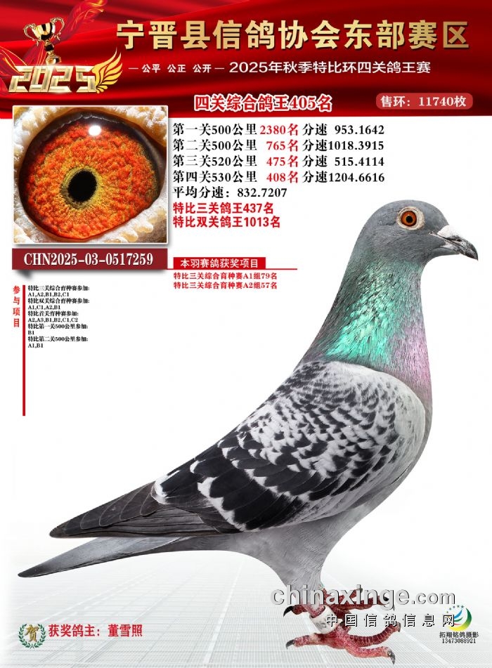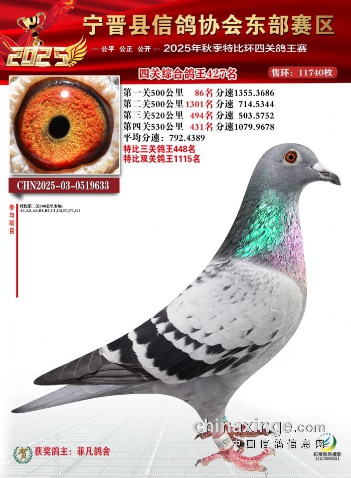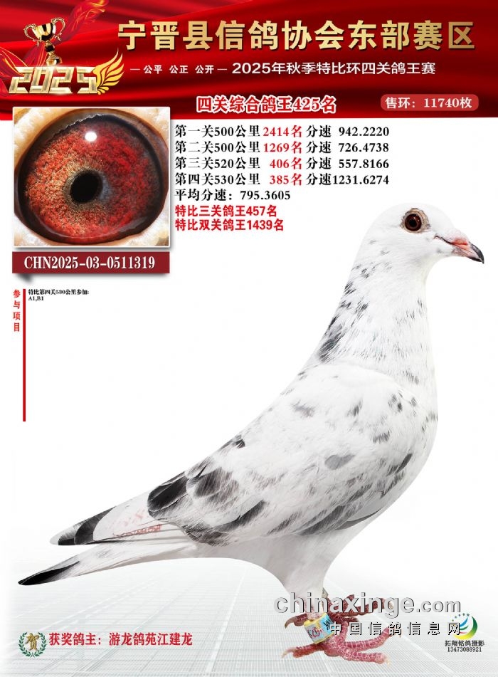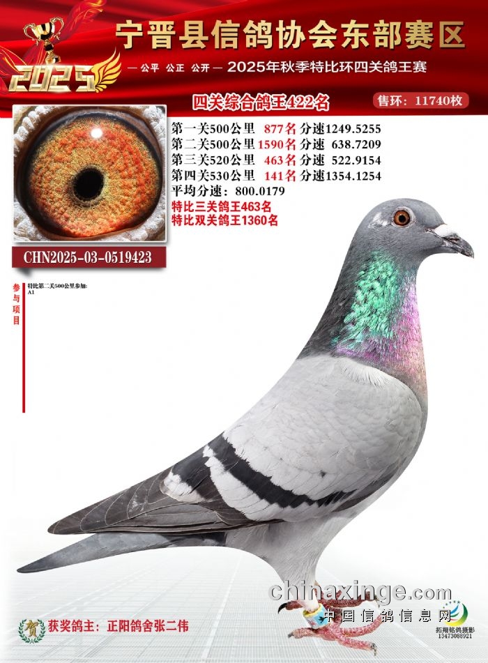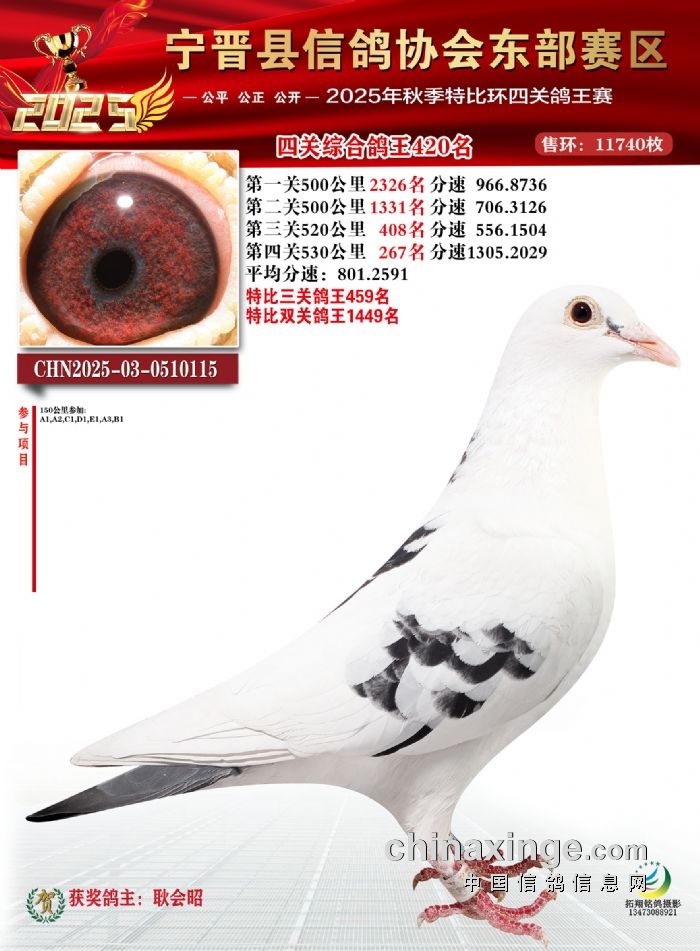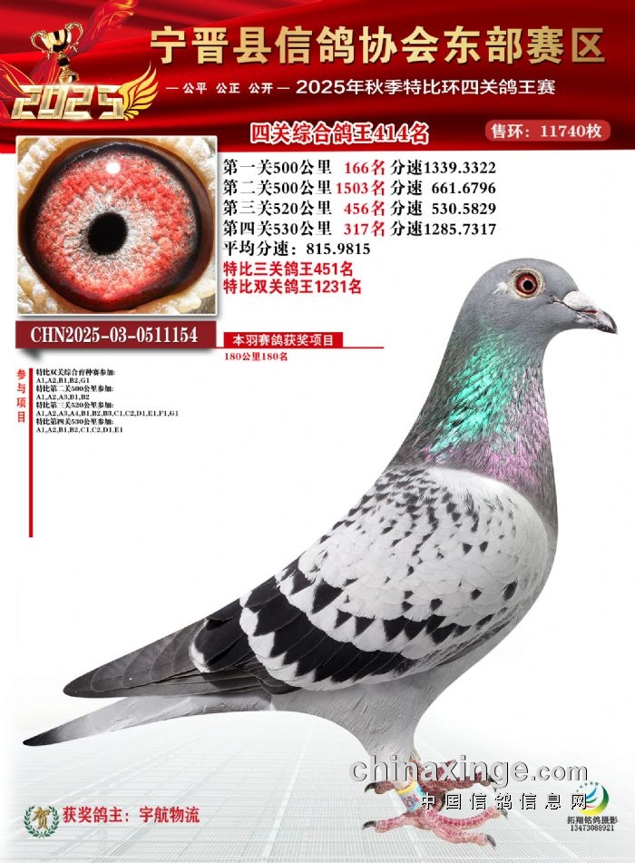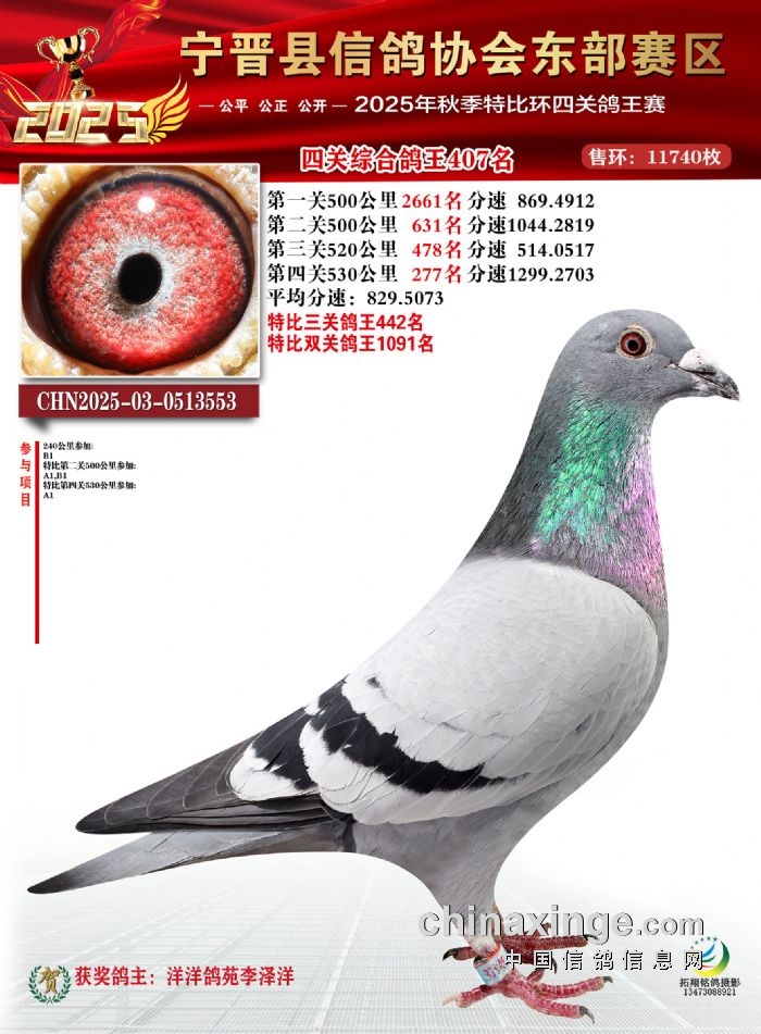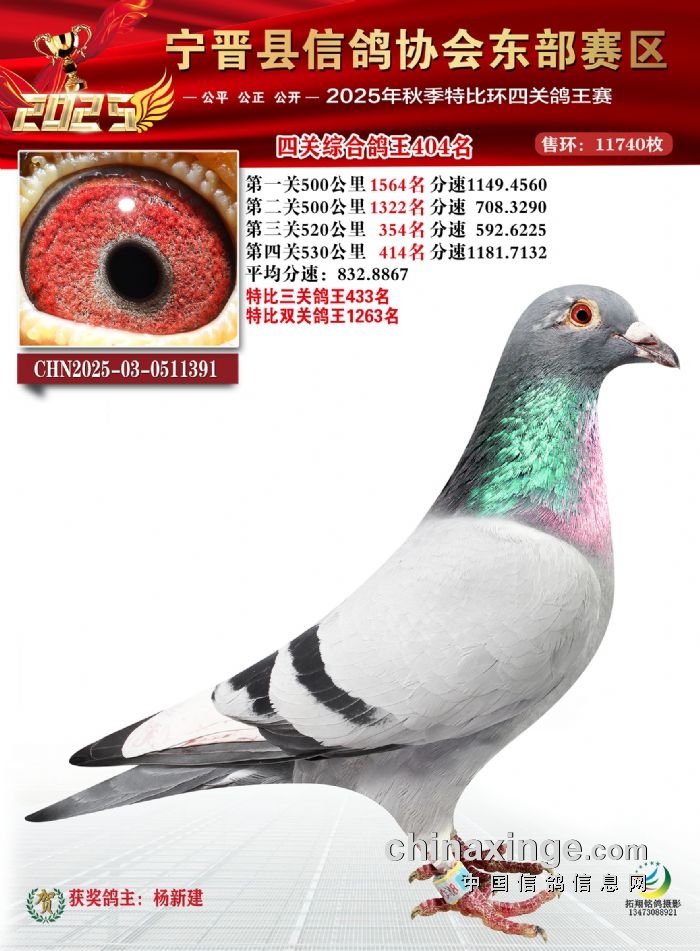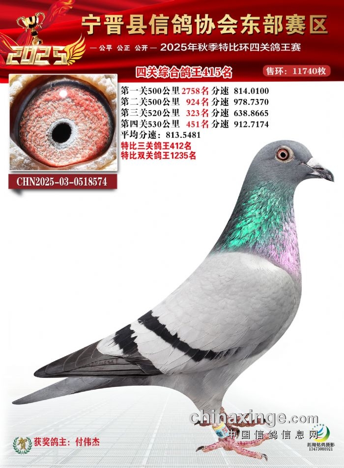 宁晋县东部赛区(黄儿营) 25年秋季特比环四关综合优胜鸽拍卖资料