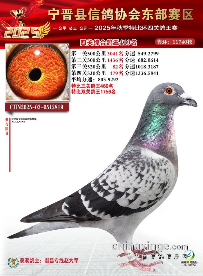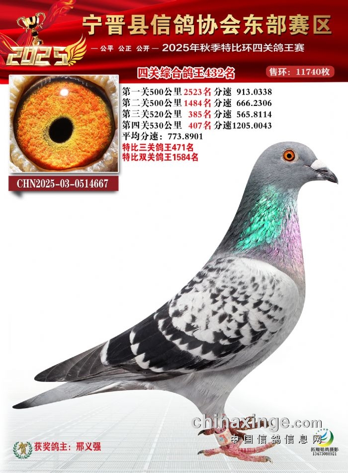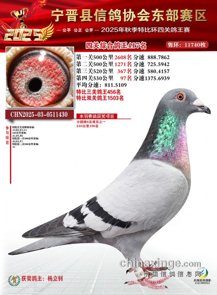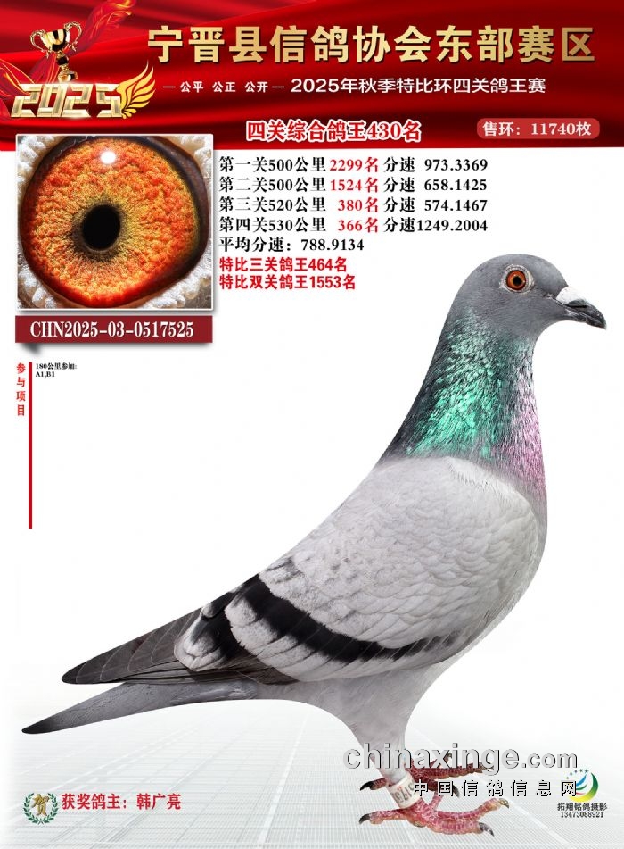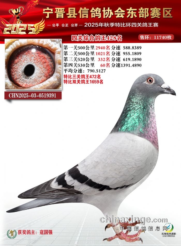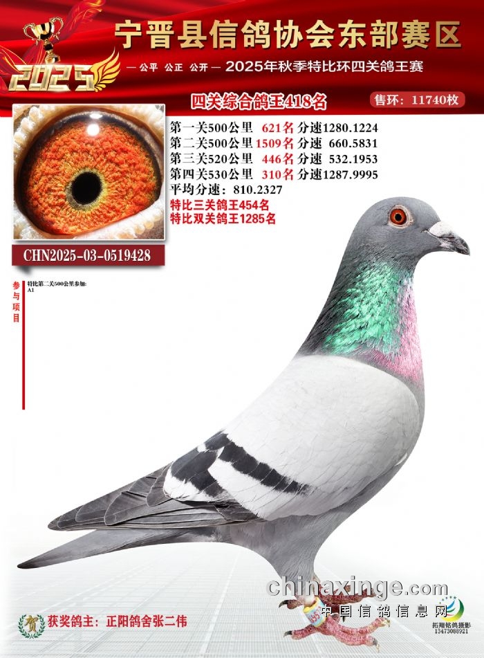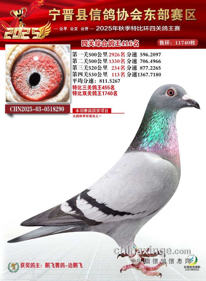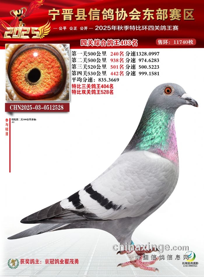 宁晋县东部赛区(黄儿营) 25年秋季特比环四关综合优胜鸽拍卖资料