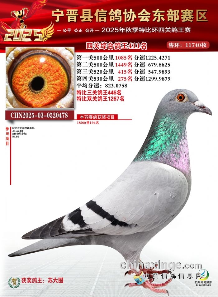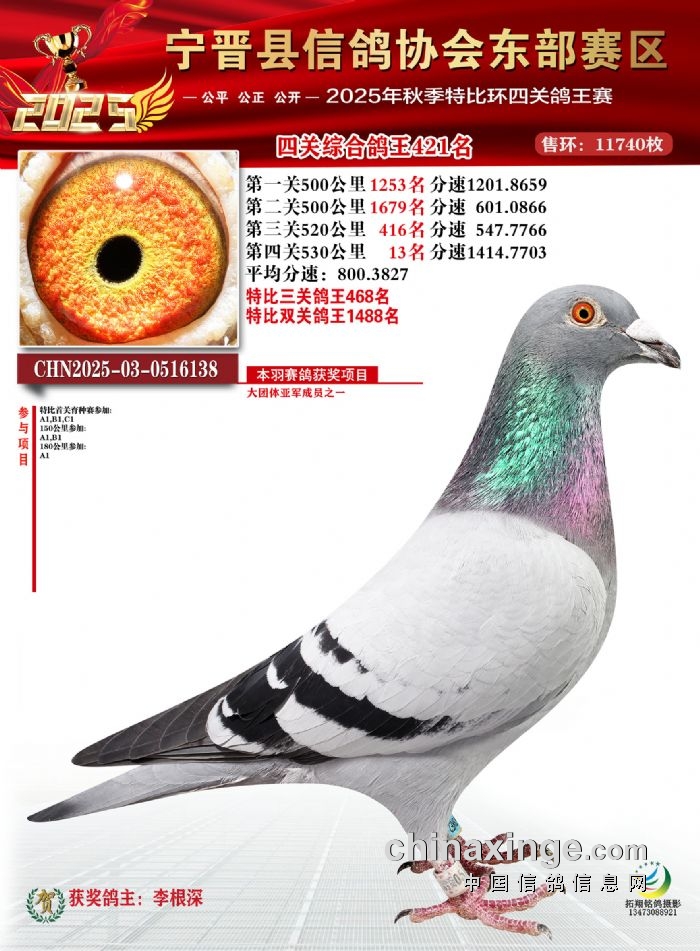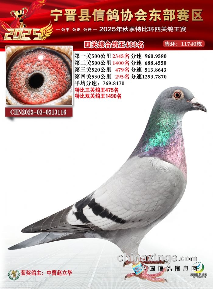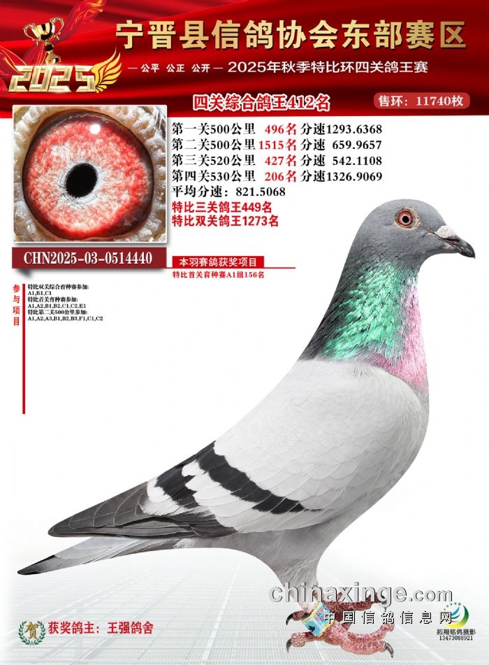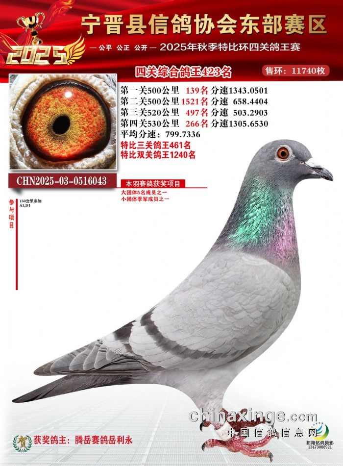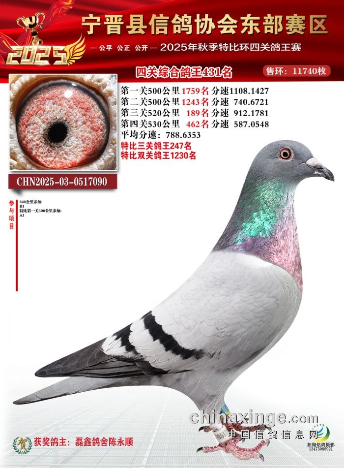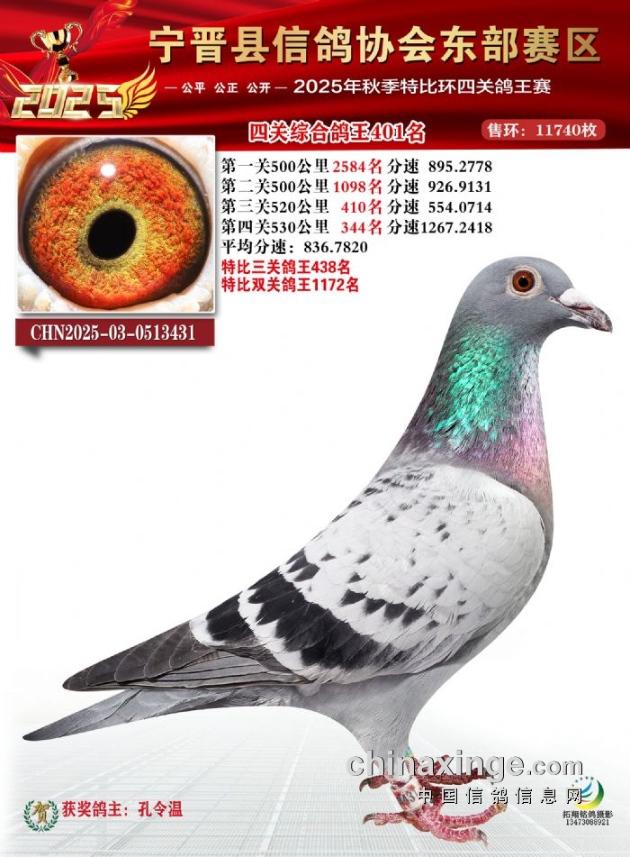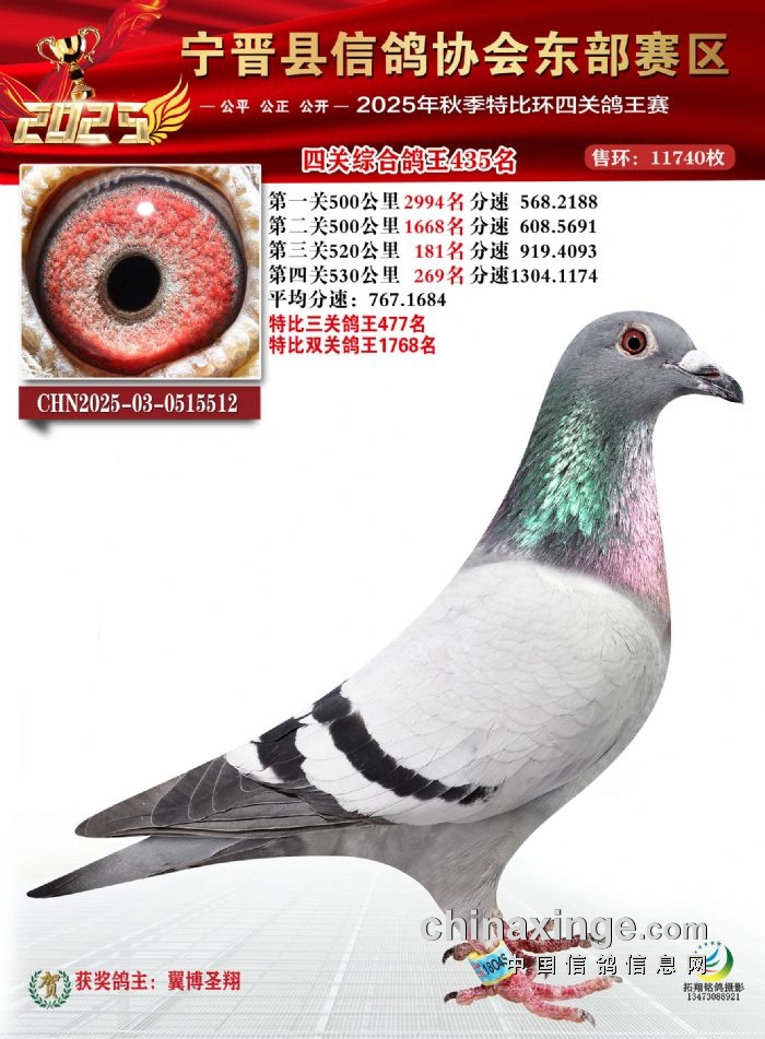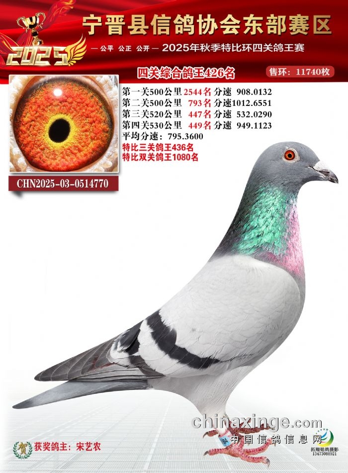 宁晋县东部赛区(黄儿营) 25年秋季特比环四关综合优胜鸽拍卖资料