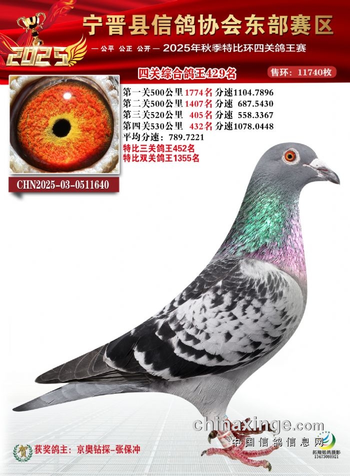 宁晋县东部赛区(黄儿营)25年秋季特比环四关综合优胜鸽401-435名