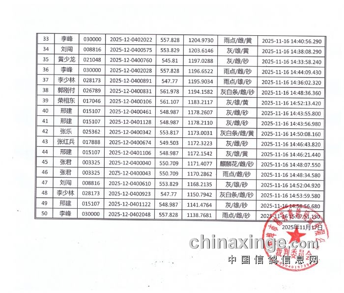 蚌埠精英赛鸽公司2025年秋季特比环第三关550公里东光站育种赛参赛情况说明