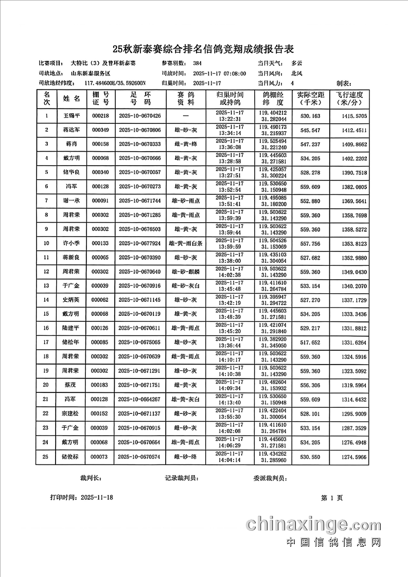 宜兴市信鸽协会2025年秋季第一关(大小特比及普环)蒙阴站比赛网址