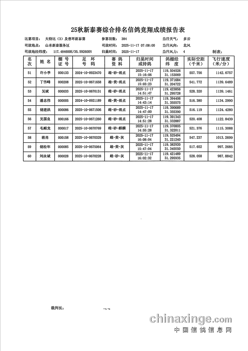 宜兴市信鸽协会2025年秋季第三关新泰站比赛网址
