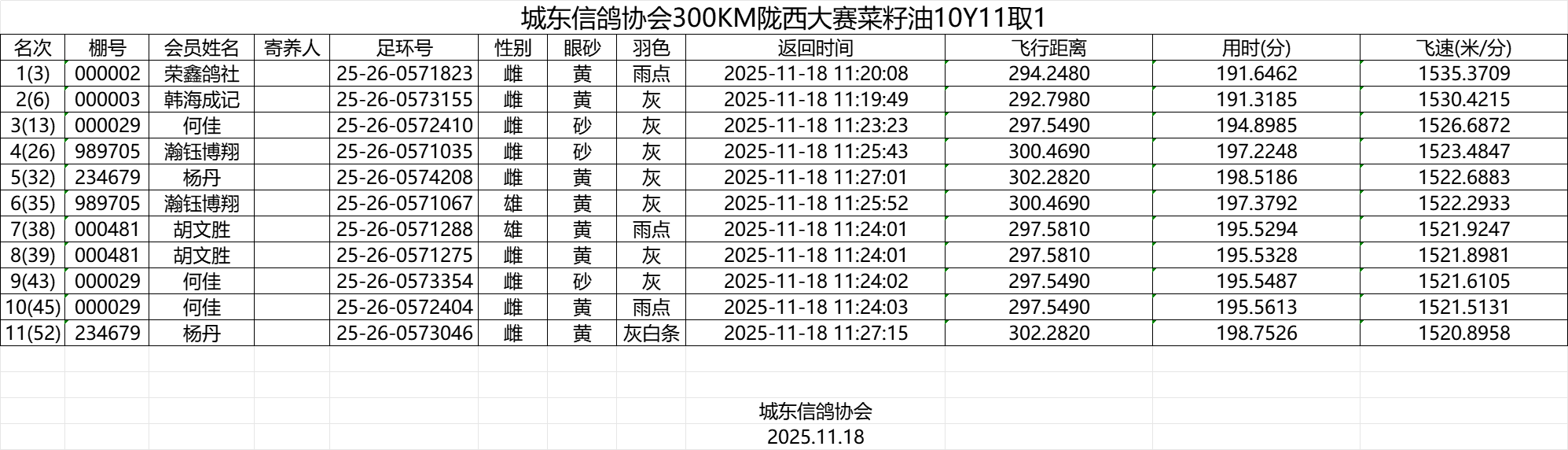 城东信鸽协会300KM陇西大赛菜籽油10Y11取1