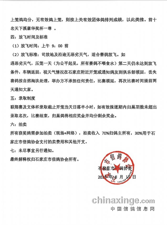 石家庄市桥西区信鸽协会12月4日鸽圈智能拍直播公告