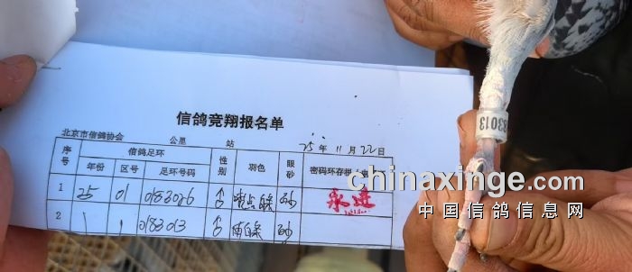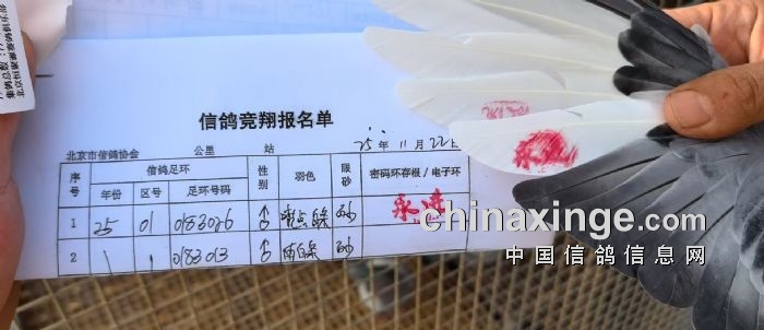 北京市信鸽协会520公里卫辉西房山赛区集鸽羽数