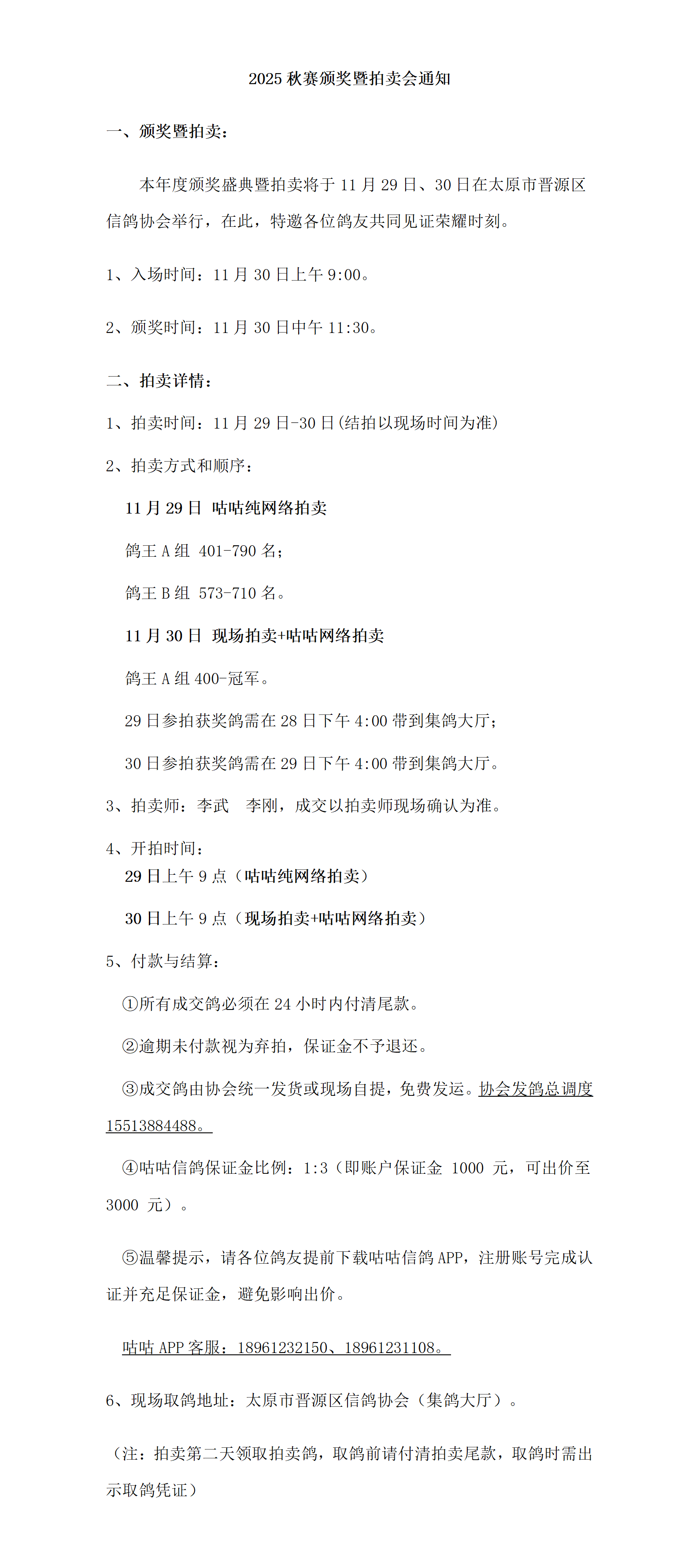 晋源区信鸽协会2025秋【资格赛】集鸽通知