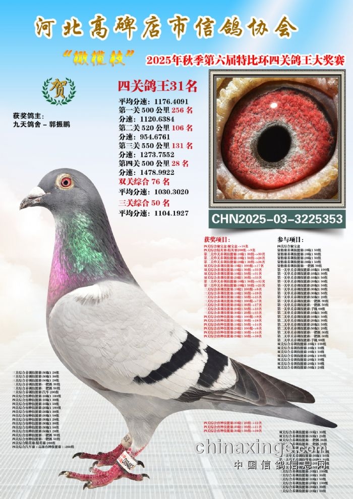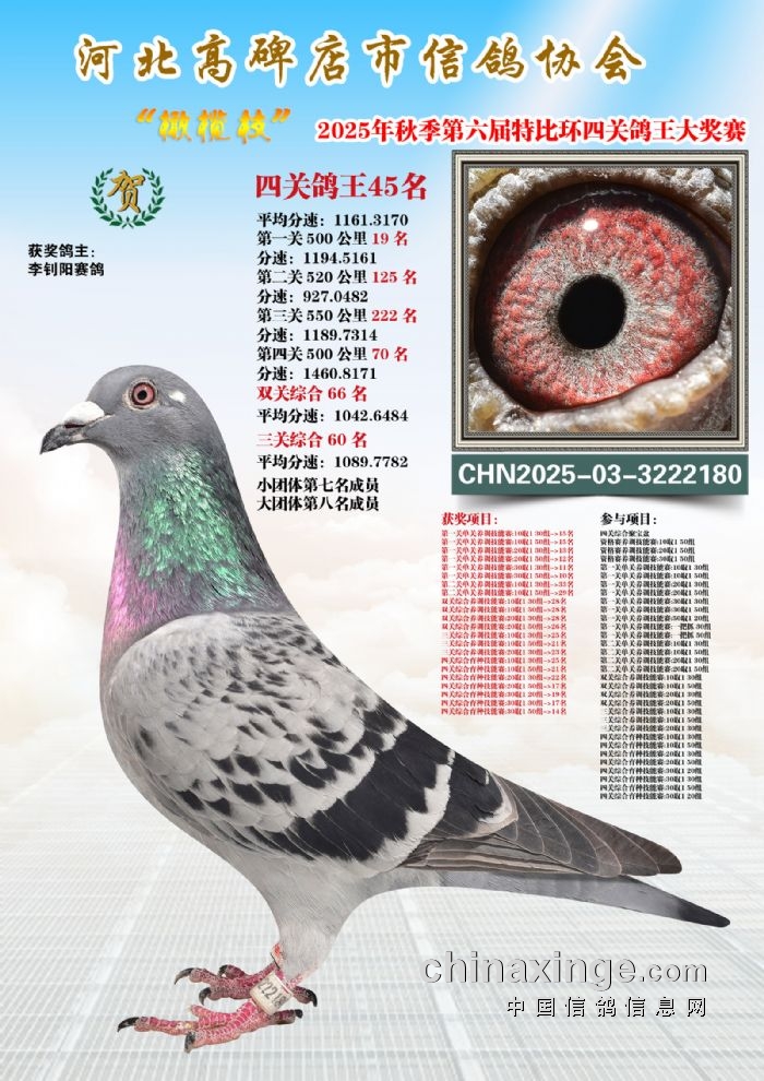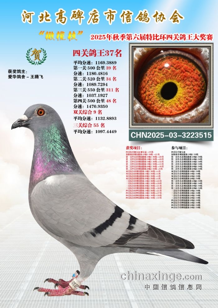 2025年秋特比环四关综合鸽王31-45名照片赏析