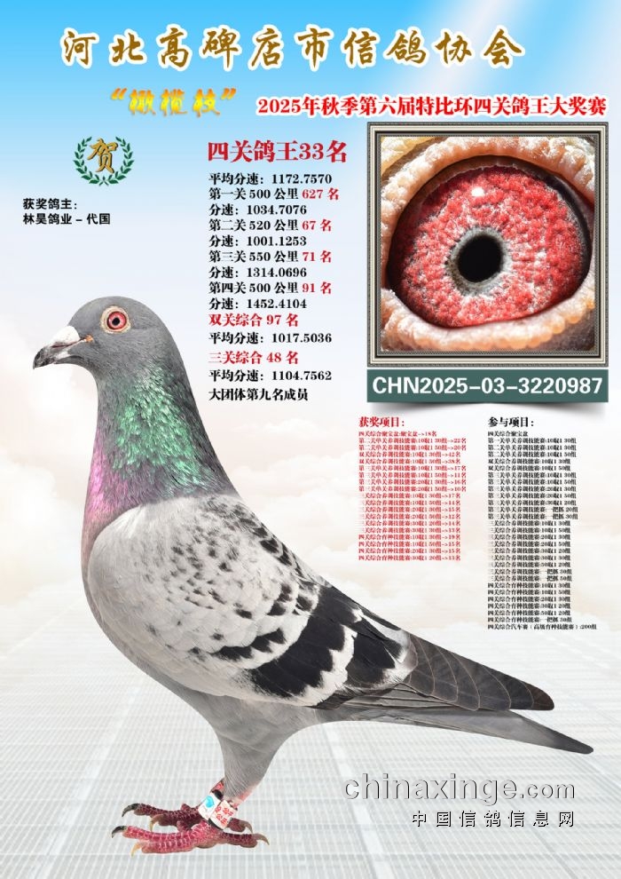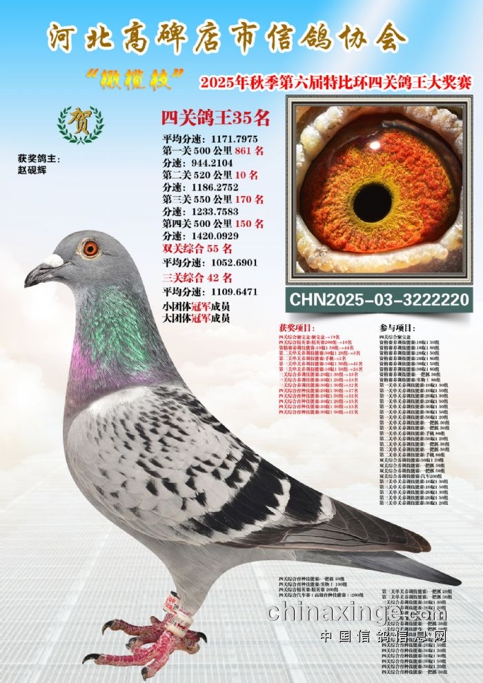 2025年秋特比环四关综合鸽王151-165名照片赏析