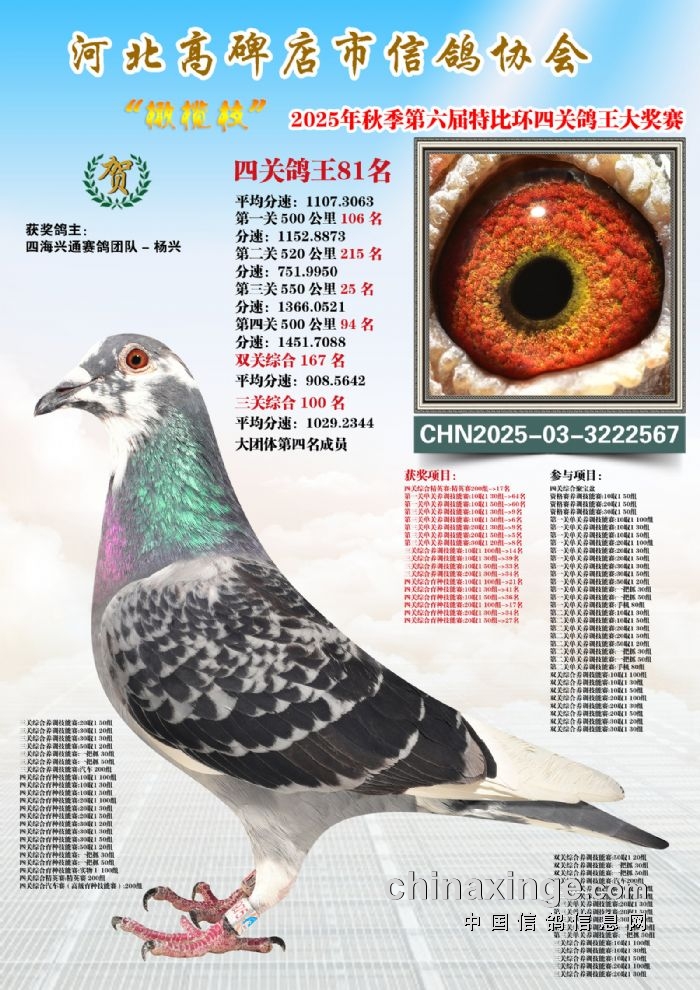 2025年秋特比环四关综合鸽王31-45名照片赏析