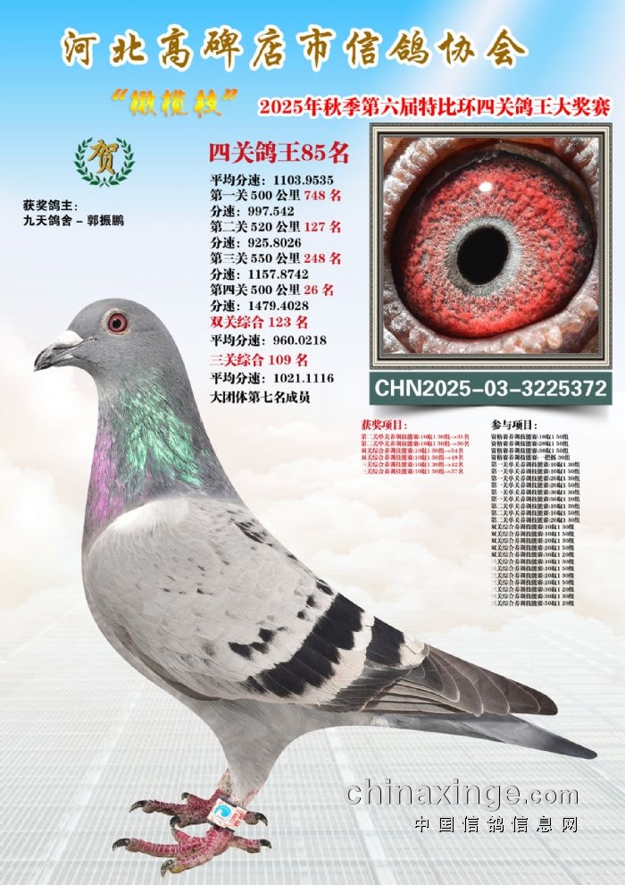 2025年秋特比环四关综合鸽王76-90名照片赏析