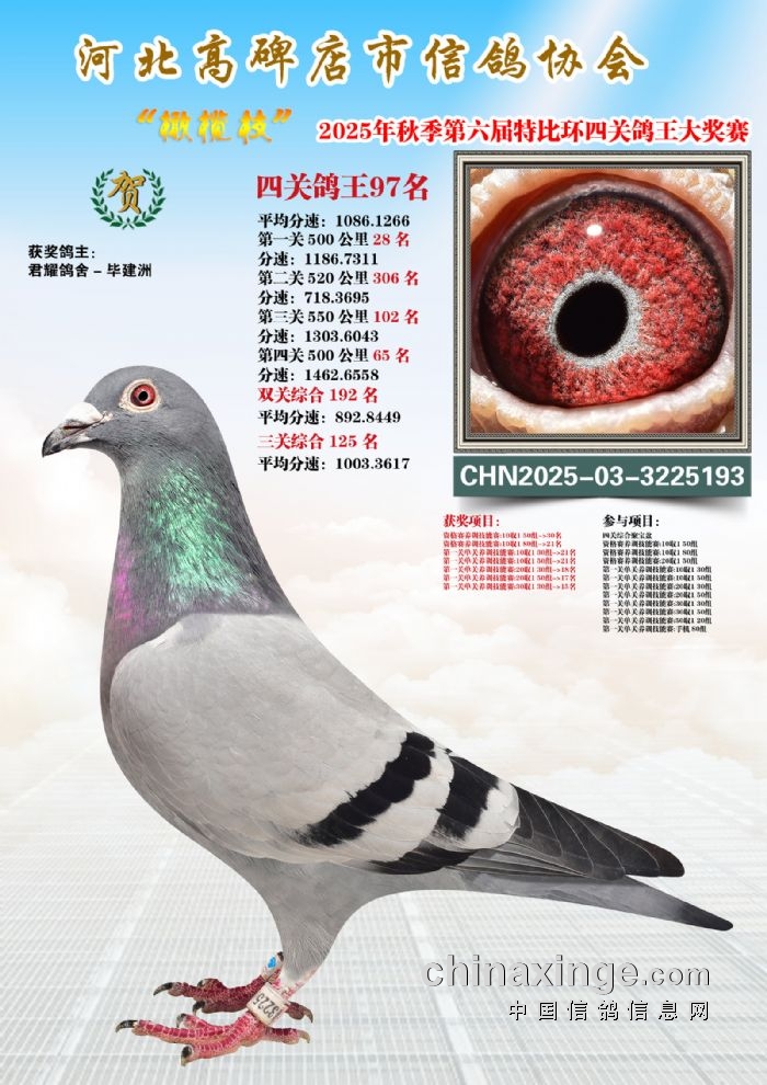 2025年秋特比环四关综合鸽王46-60名照片赏析