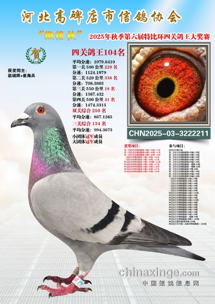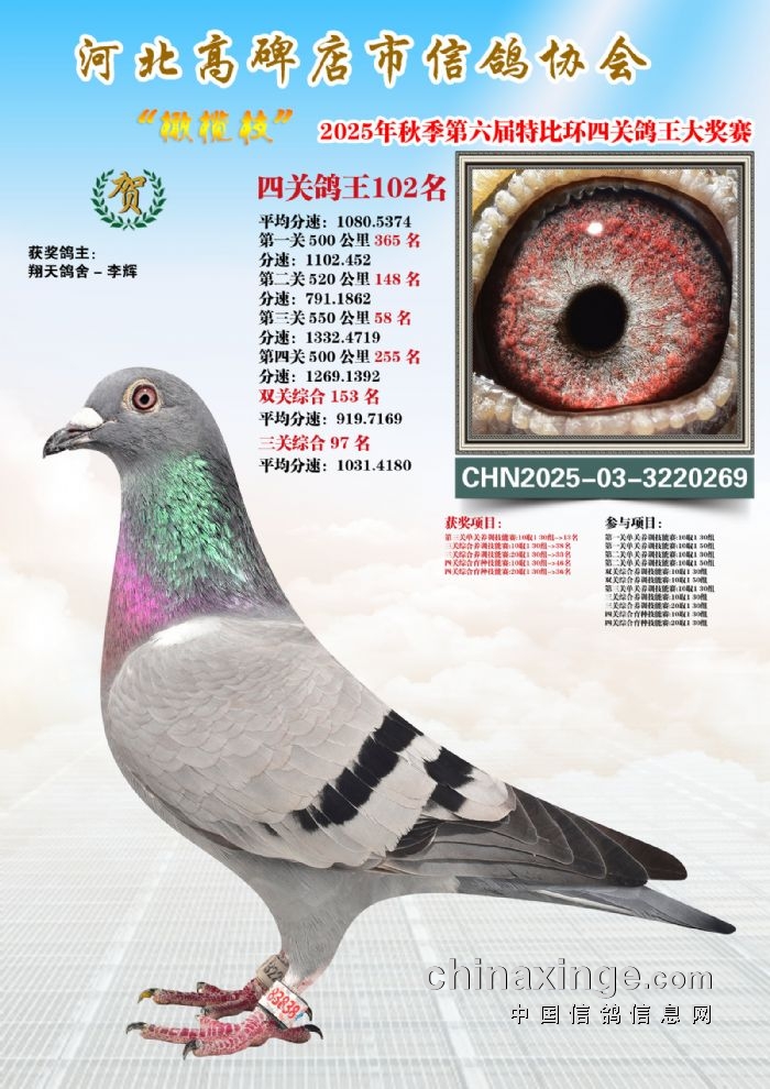 2025年秋特比环四关综合鸽王151-165名照片赏析