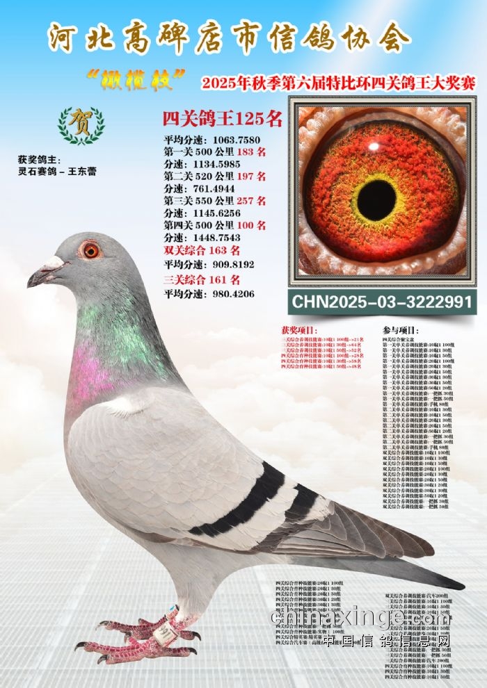2025年秋特比环四关综合鸽王121-135名照片赏析