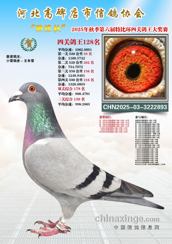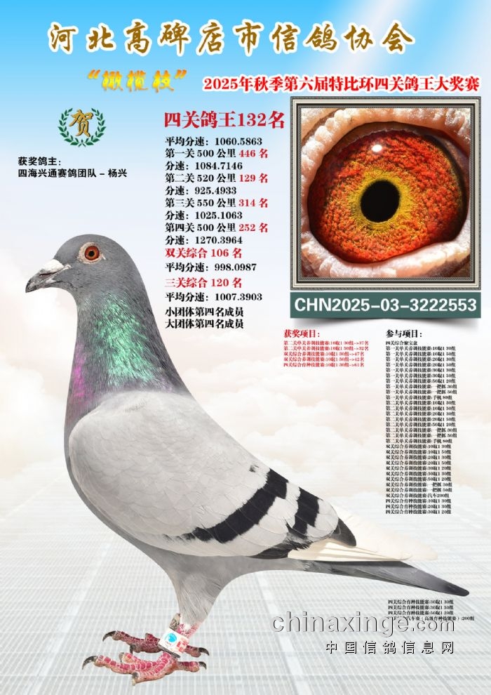 2025年秋特比环四关综合鸽王46-60名照片赏析