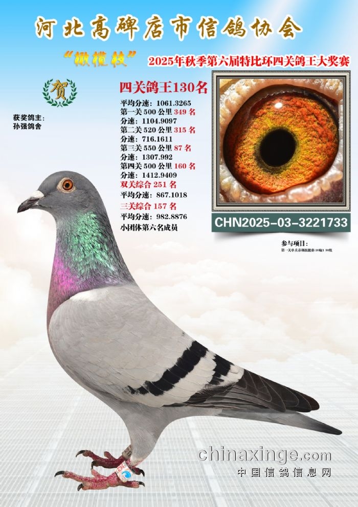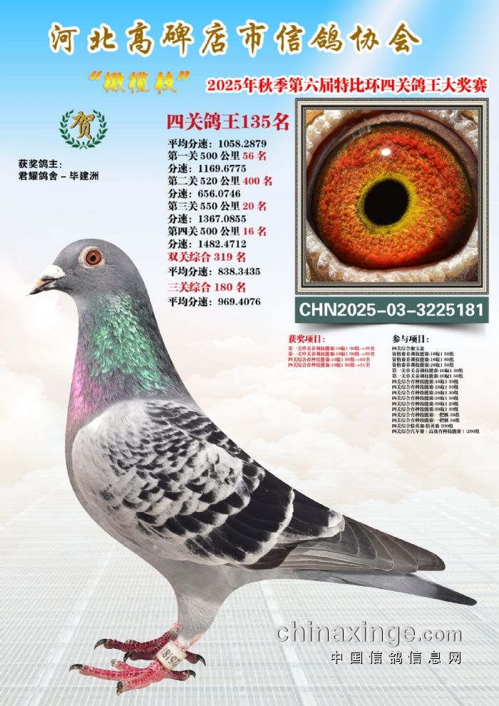 2025年秋特比环四关综合鸽王151-165名照片赏析