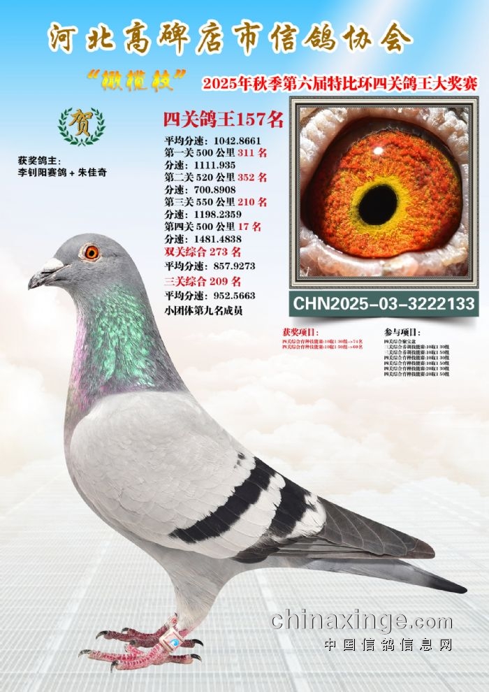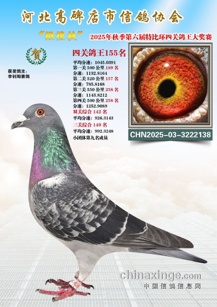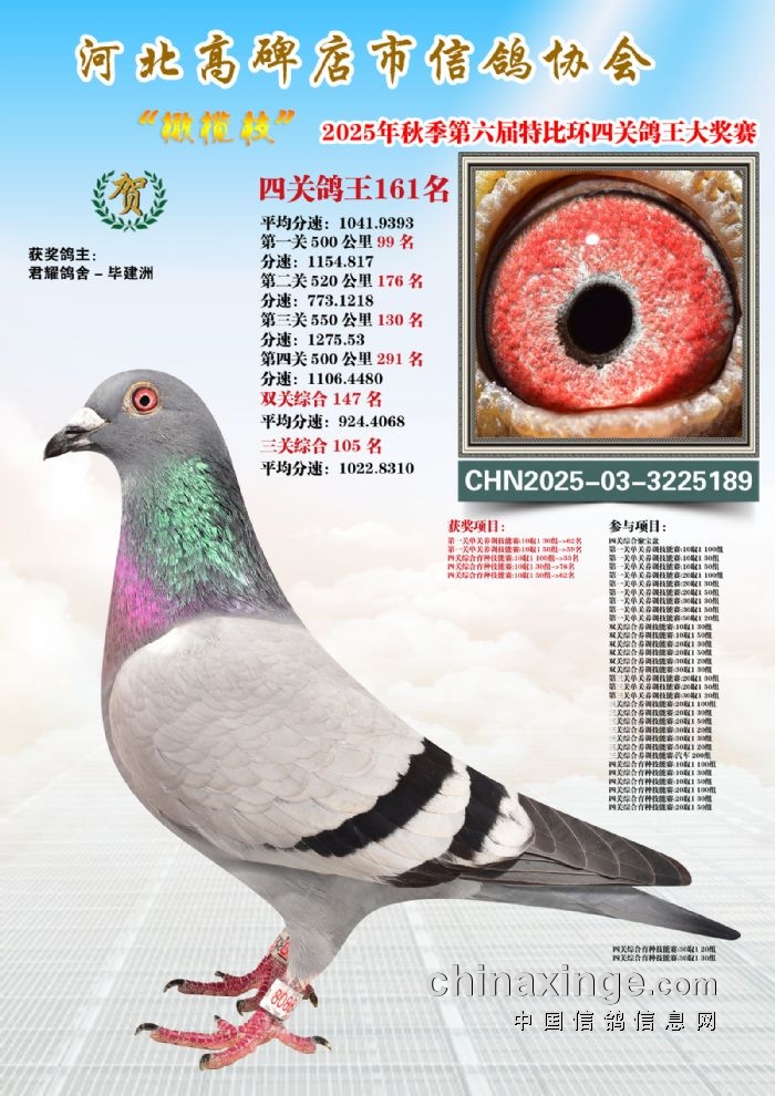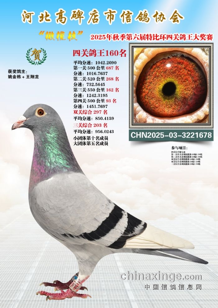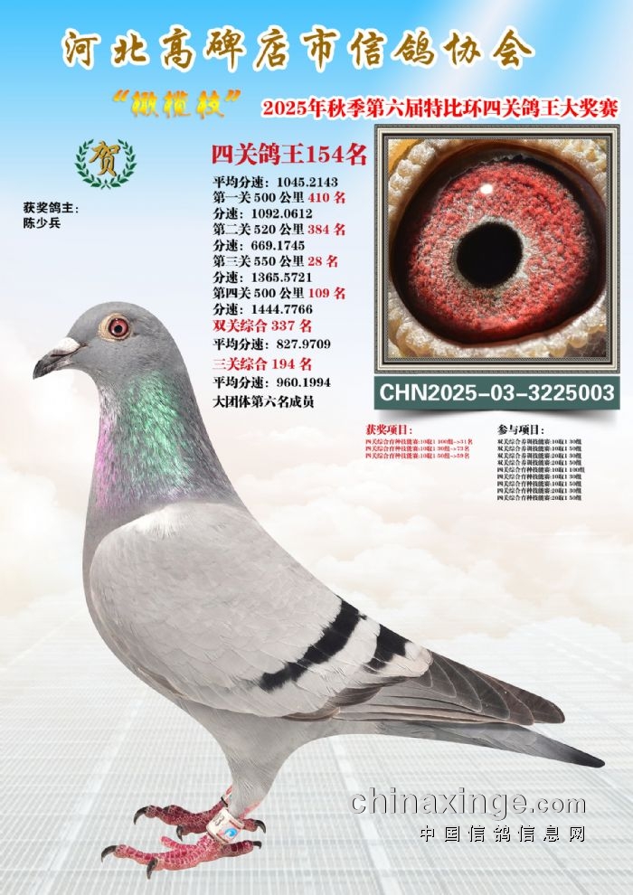 2025年秋特比环四关综合鸽王151-165名照片赏析