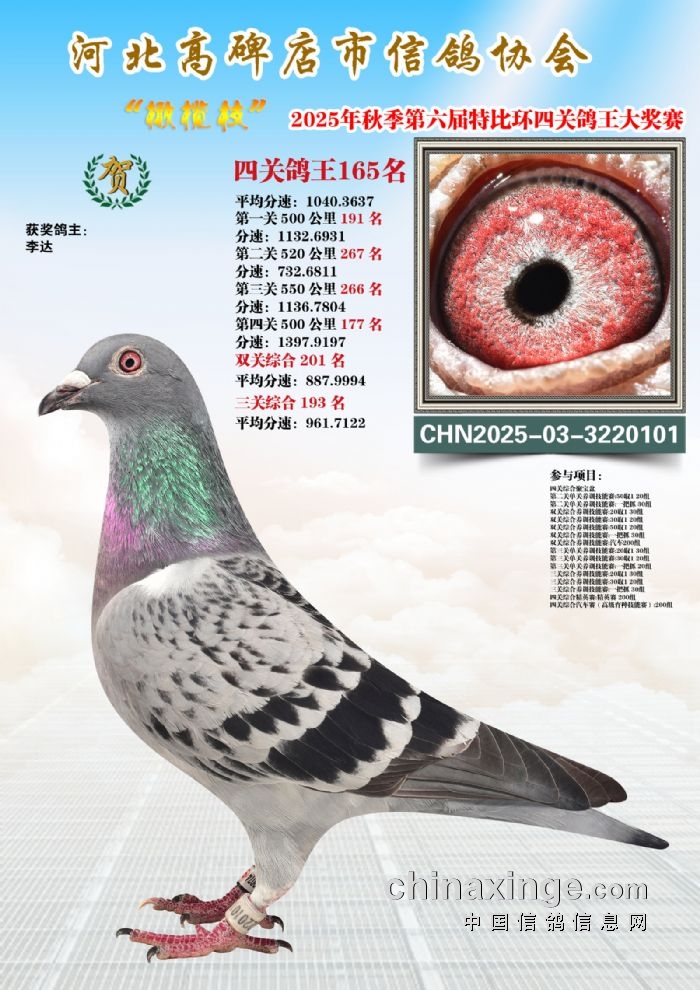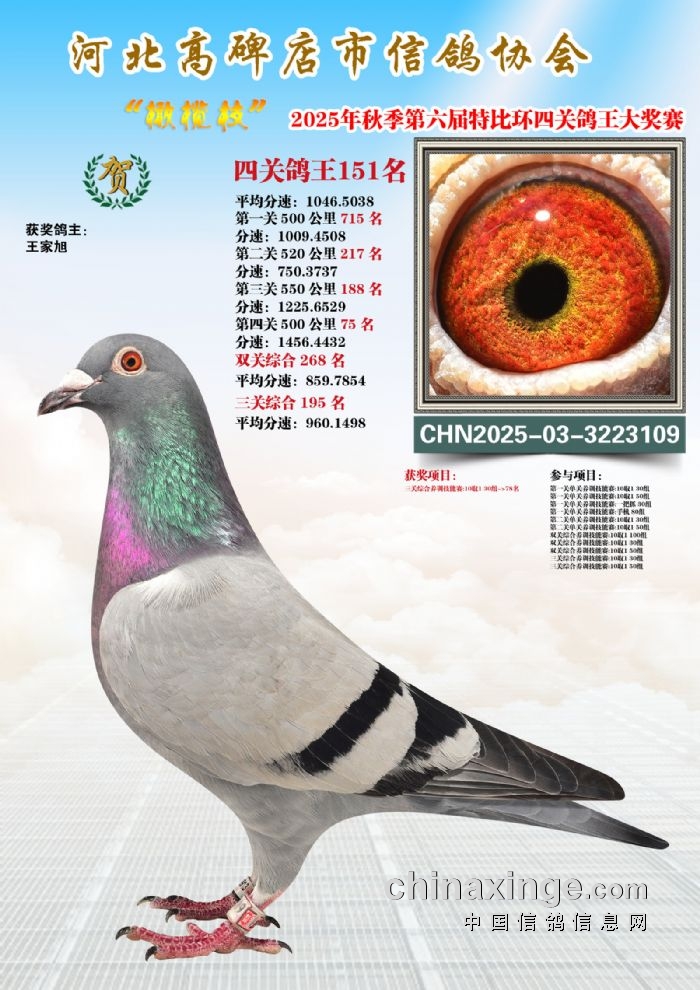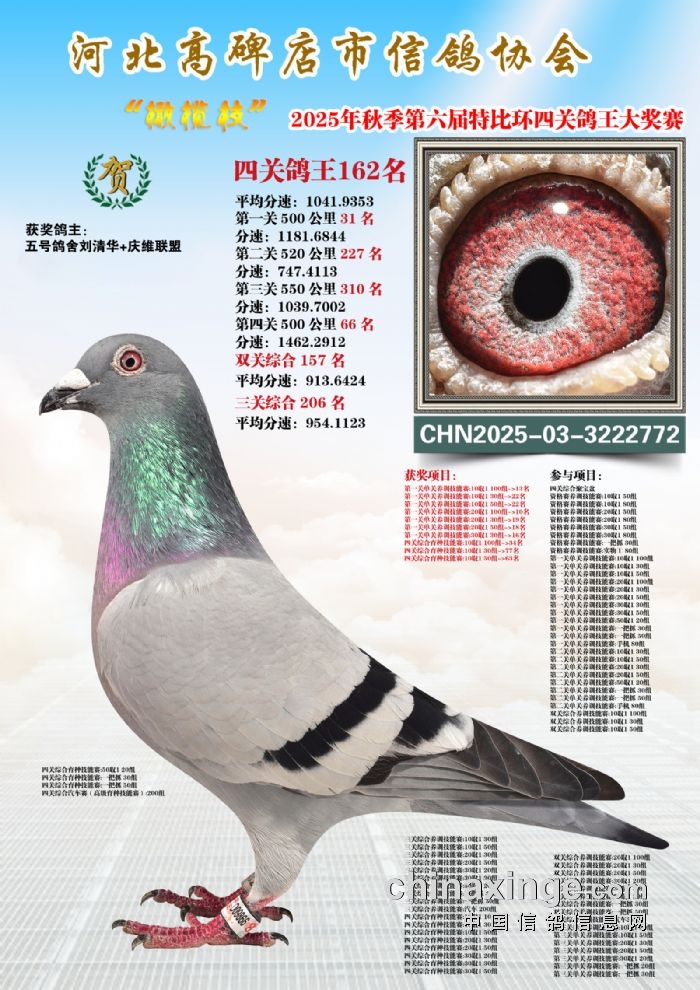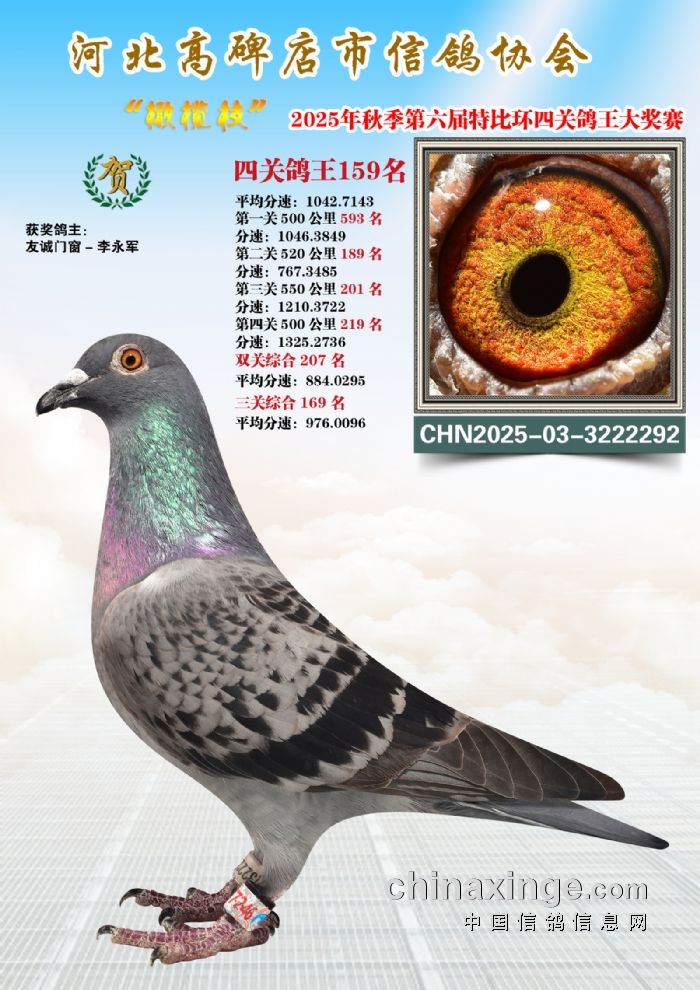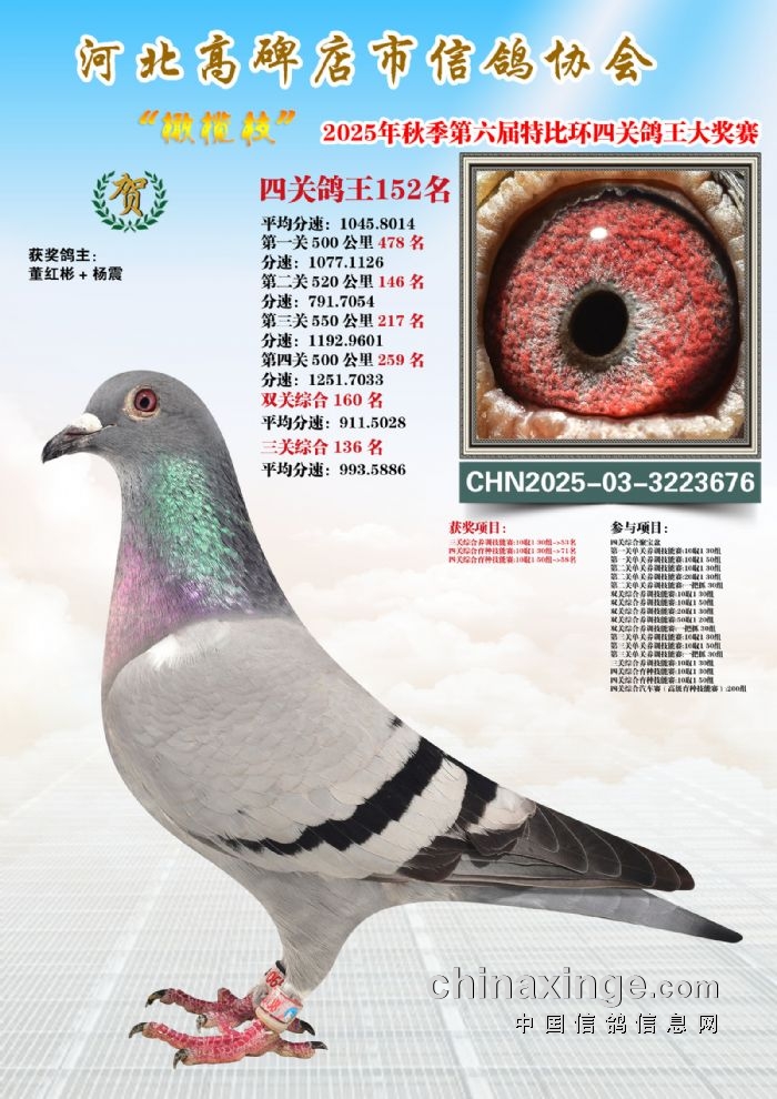 2025年秋特比环四关综合鸽王151-165名照片赏析