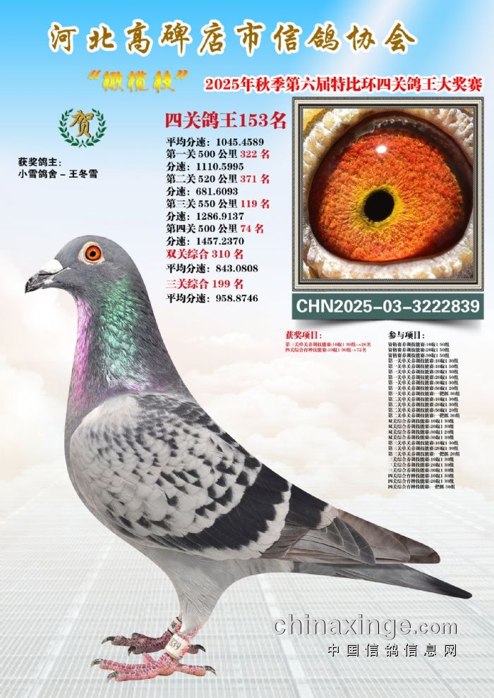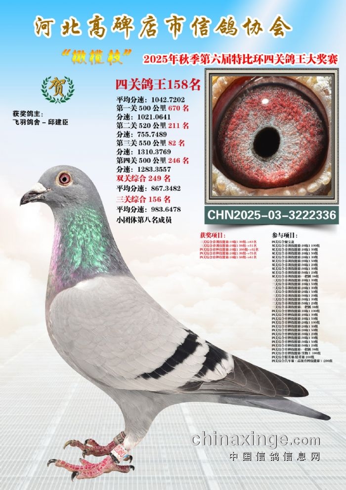2025年秋特比环四关综合鸽王46-60名照片赏析