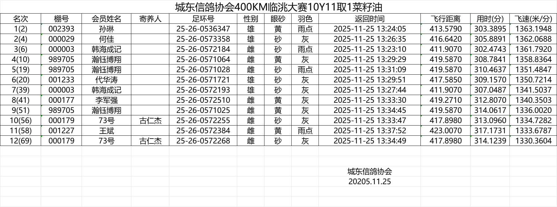 城东信鸽协会400KM临洮大赛10Y11取1菜籽油
