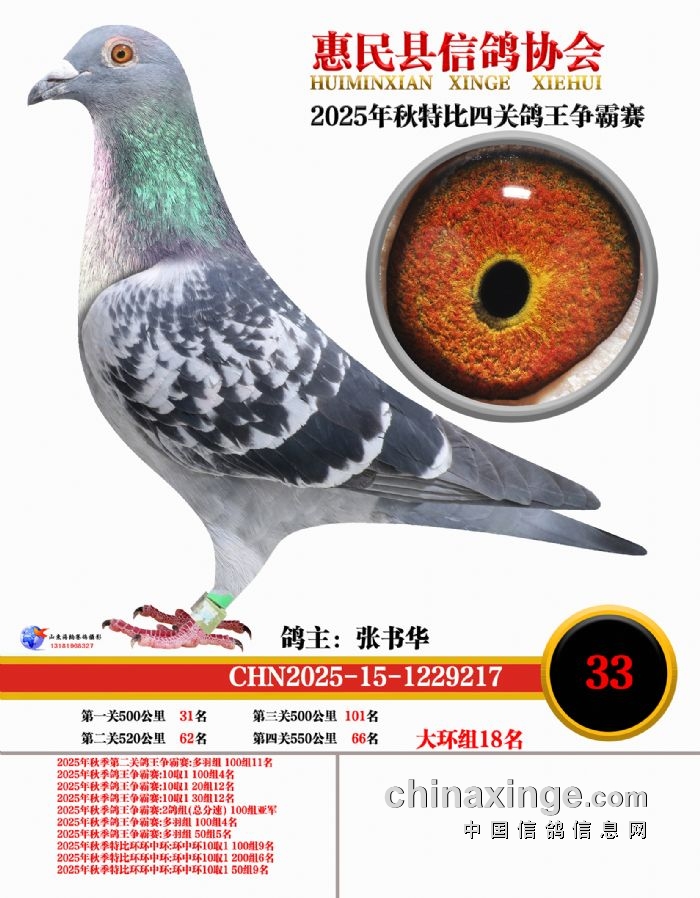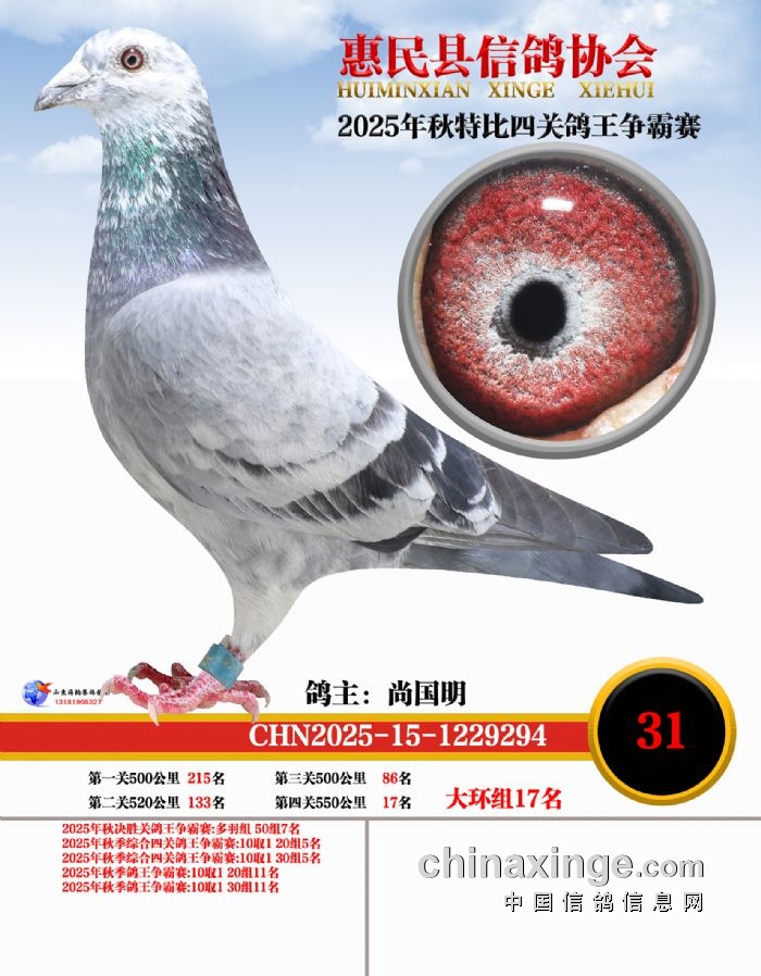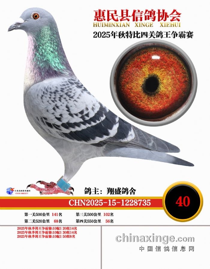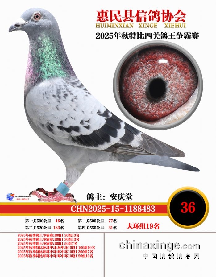 2025年秋特比环四关鸽王争霸赛31-40名鸽王靓照
