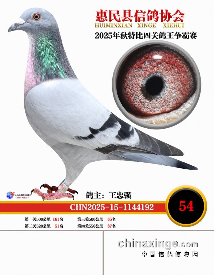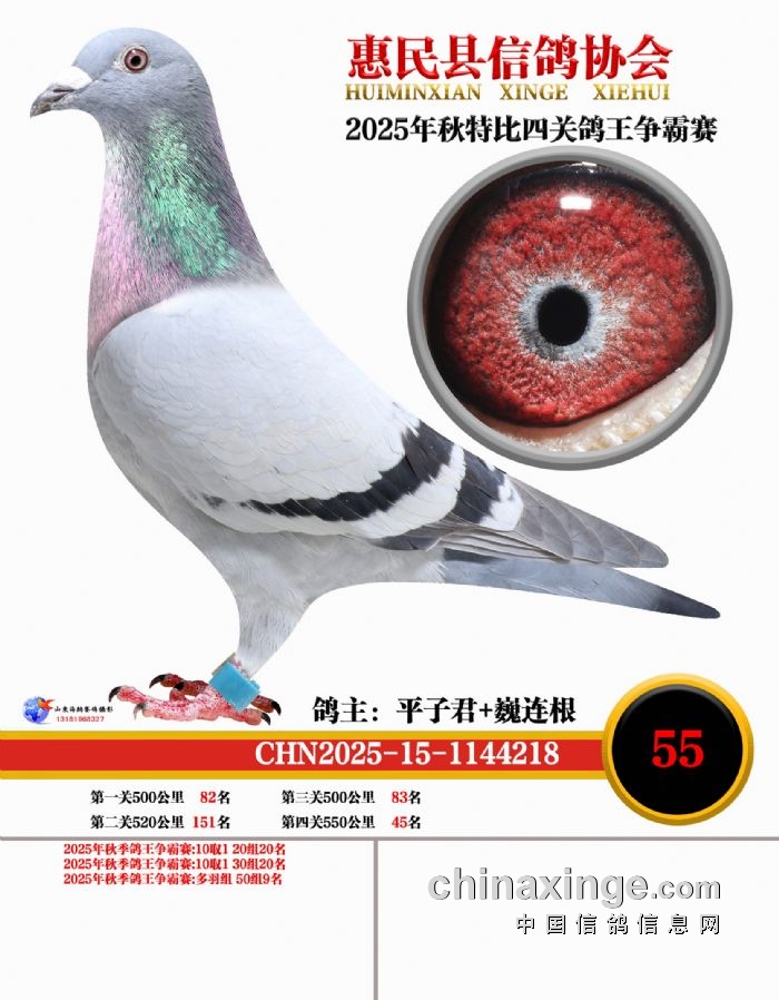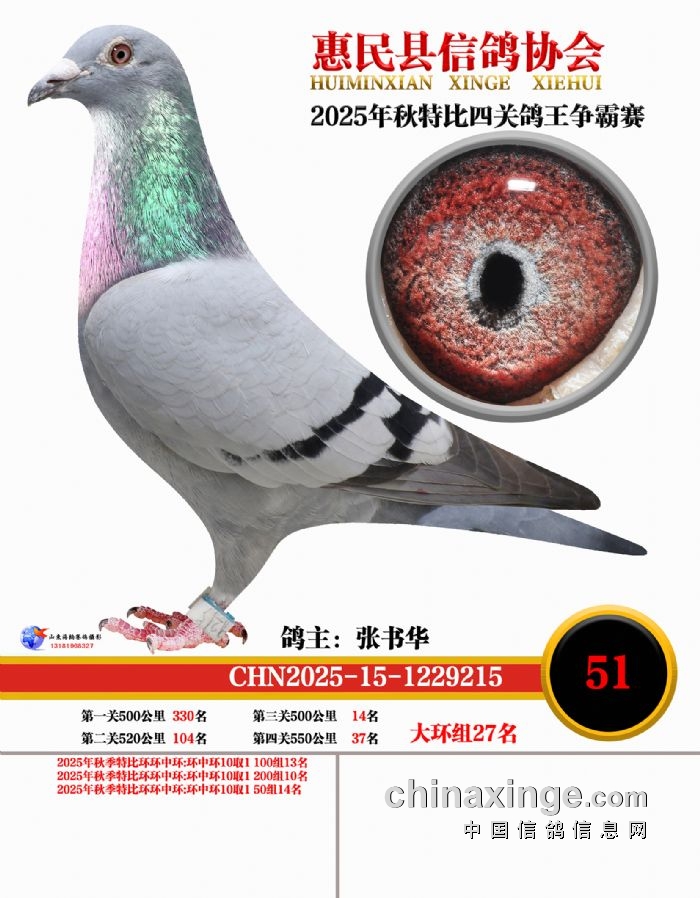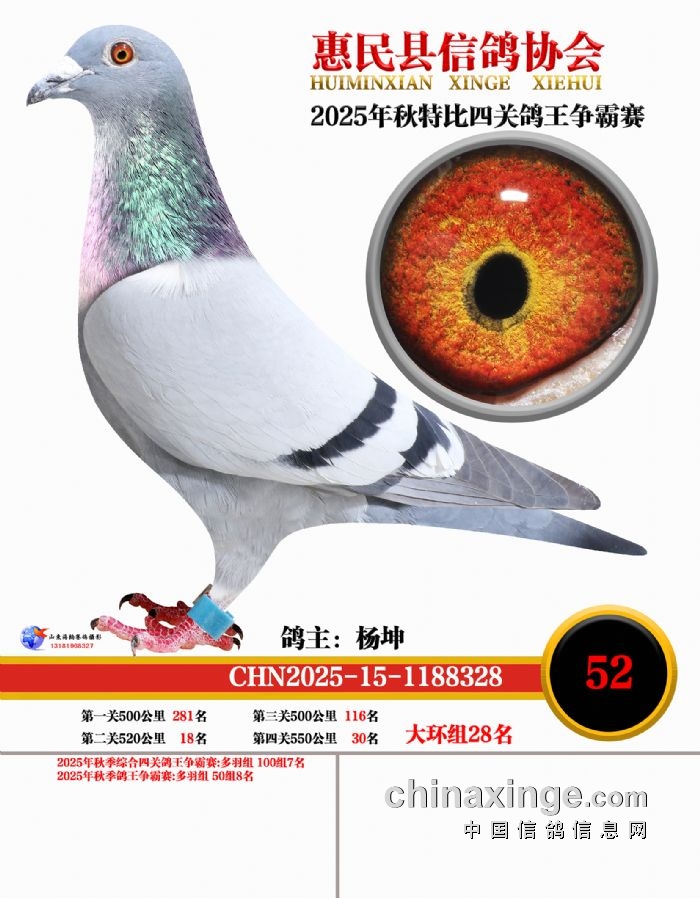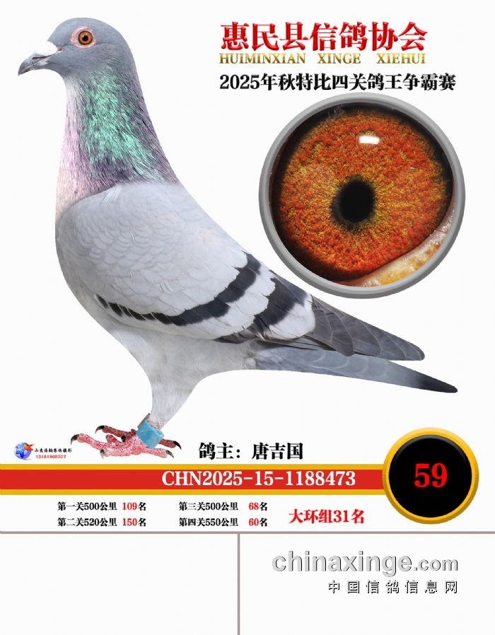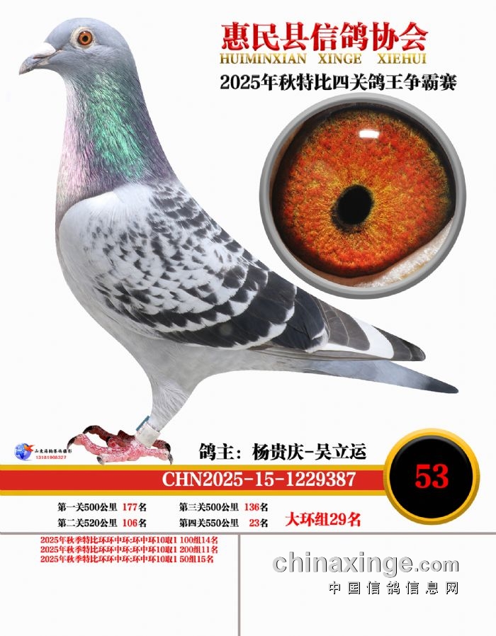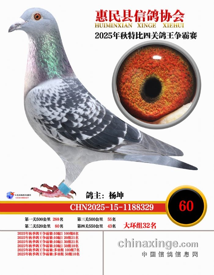 2025年秋特比环四关鸽王争霸赛51-60名鸽王靓照