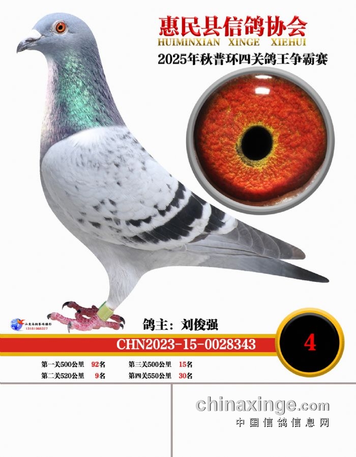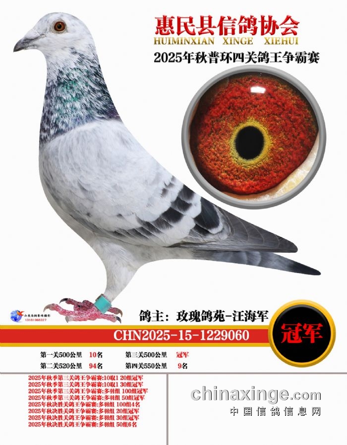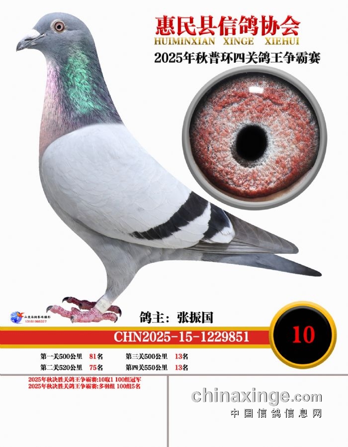 2025年秋普环四关鸽王争霸赛1-10名鸽王靓照
