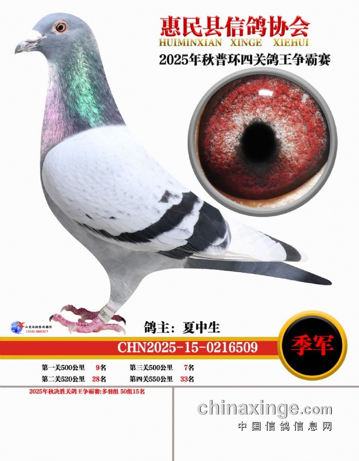 2025年秋普环四关鸽王争霸赛41-50名鸽王靓照