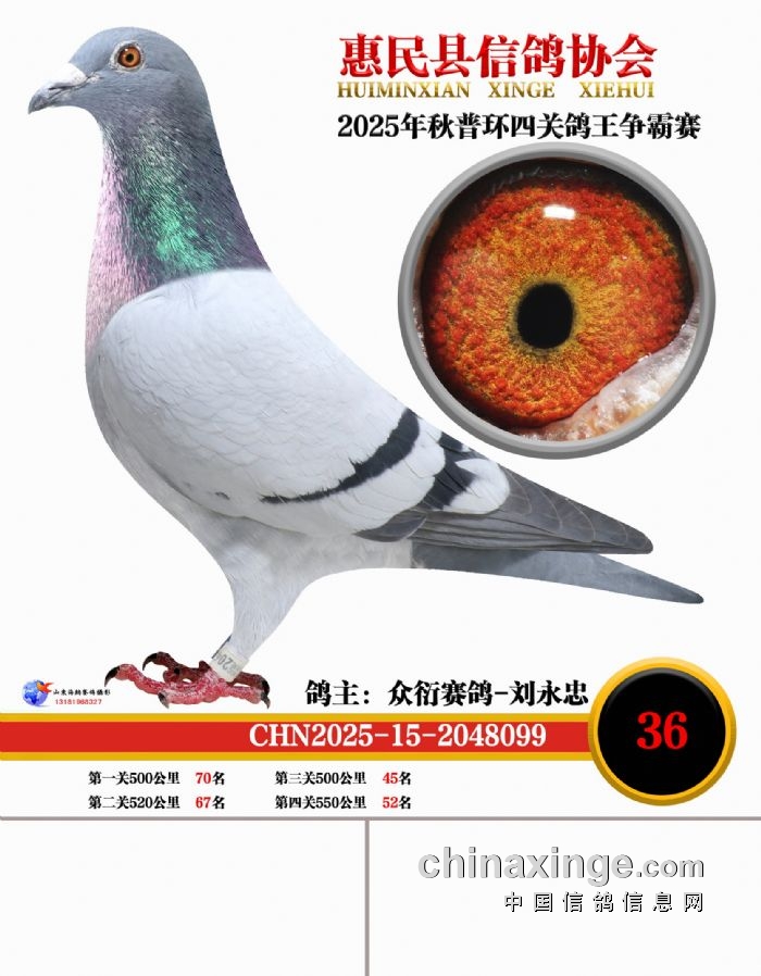 2025年秋普环四关鸽王争霸赛61-70名鸽王靓照