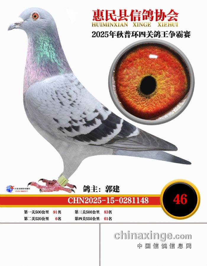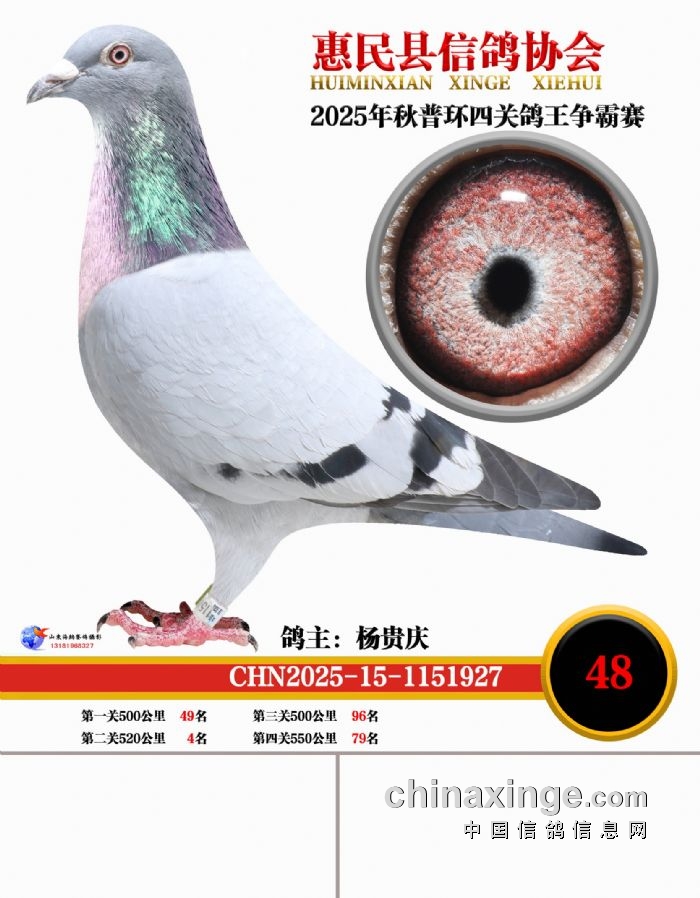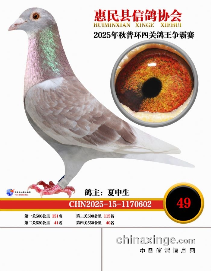 2025年秋普环四关鸽王争霸赛41-50名鸽王靓照