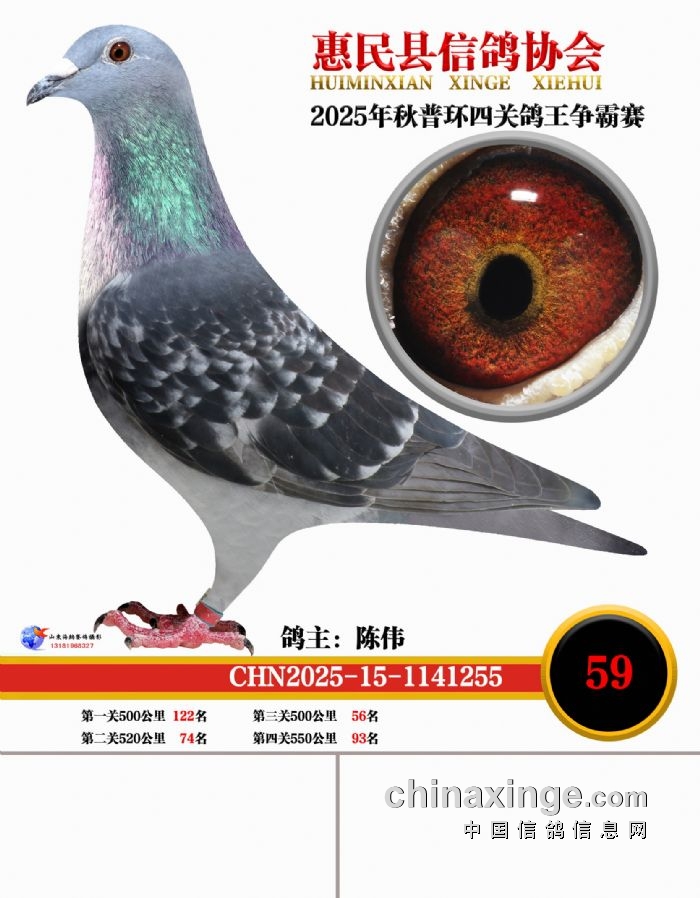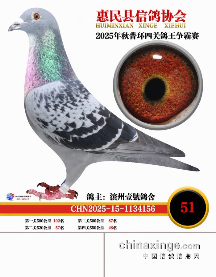 2025年秋普环四关鸽王争霸赛51-60名鸽王靓照