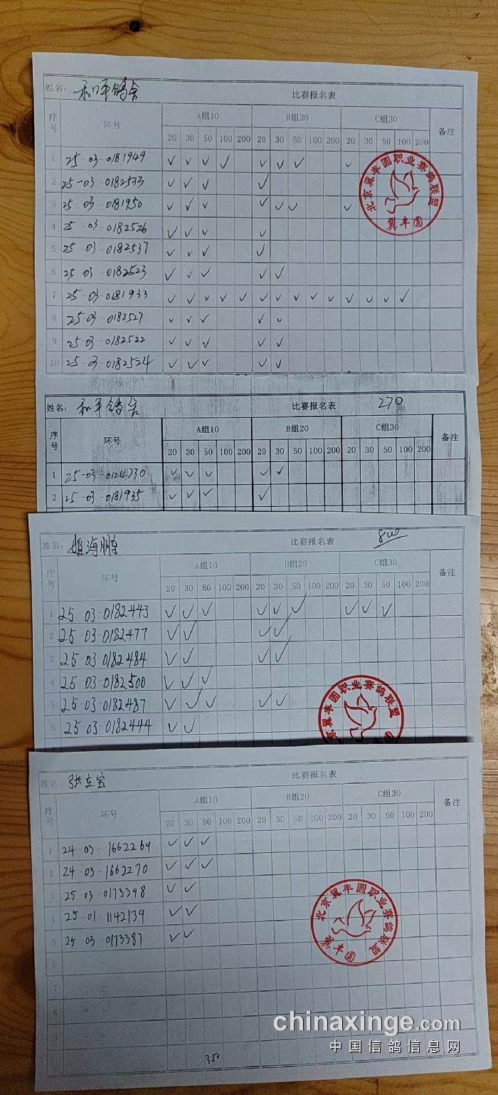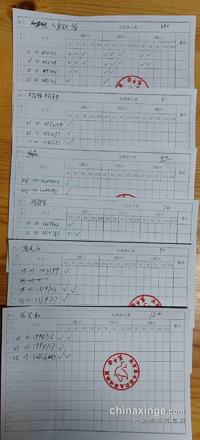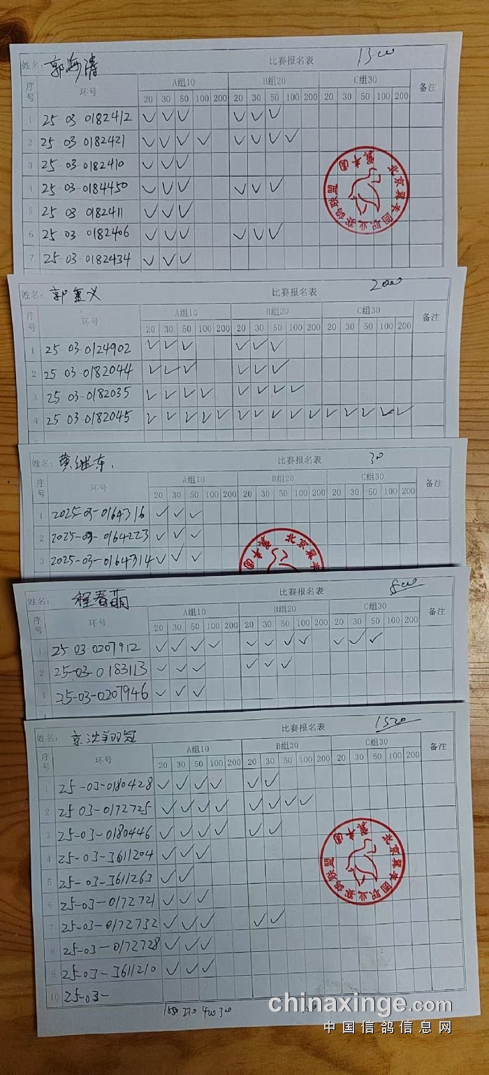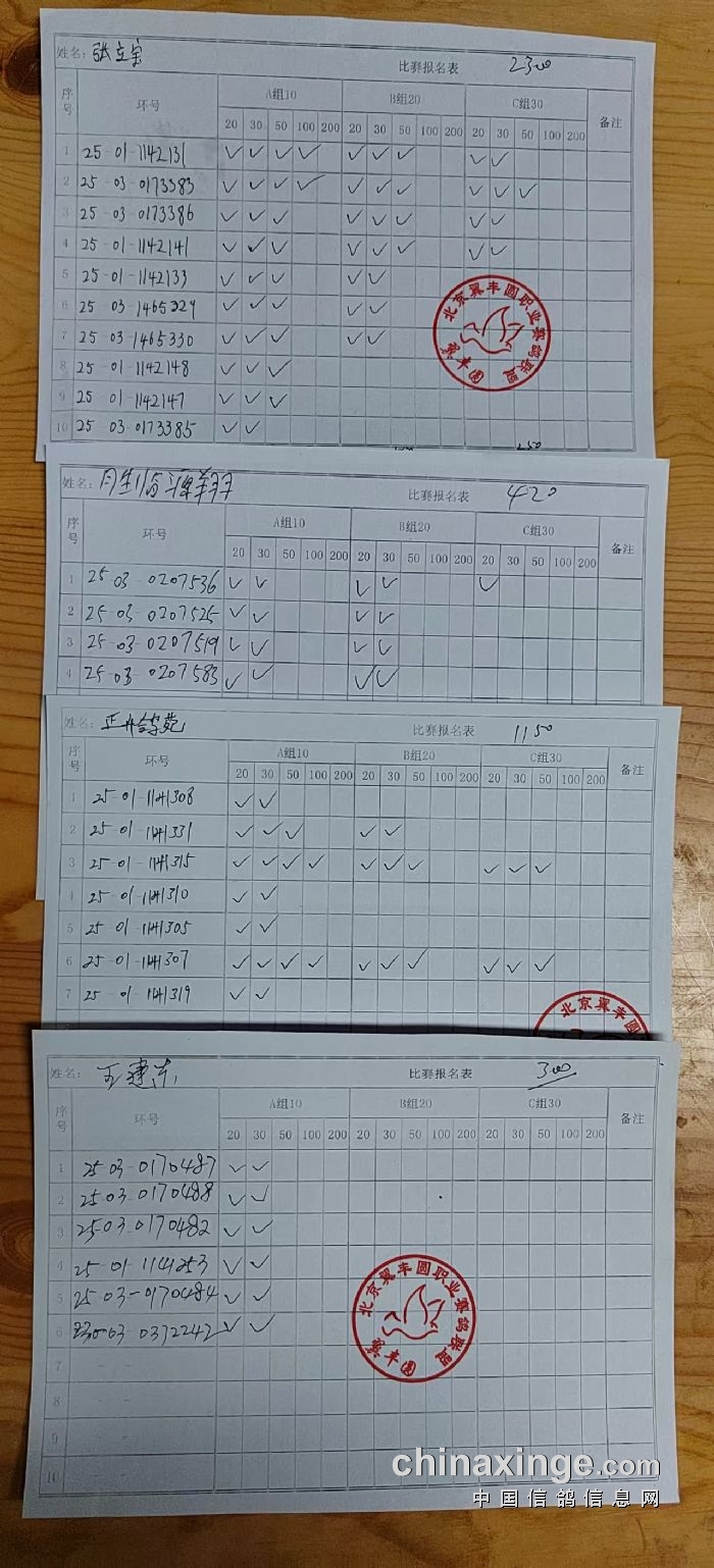 通州区信鸽协会2025年11月26日500公里现场参赛原单