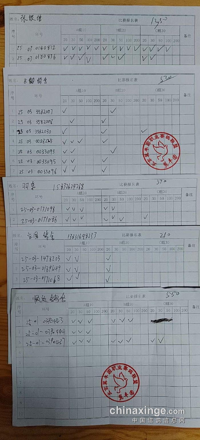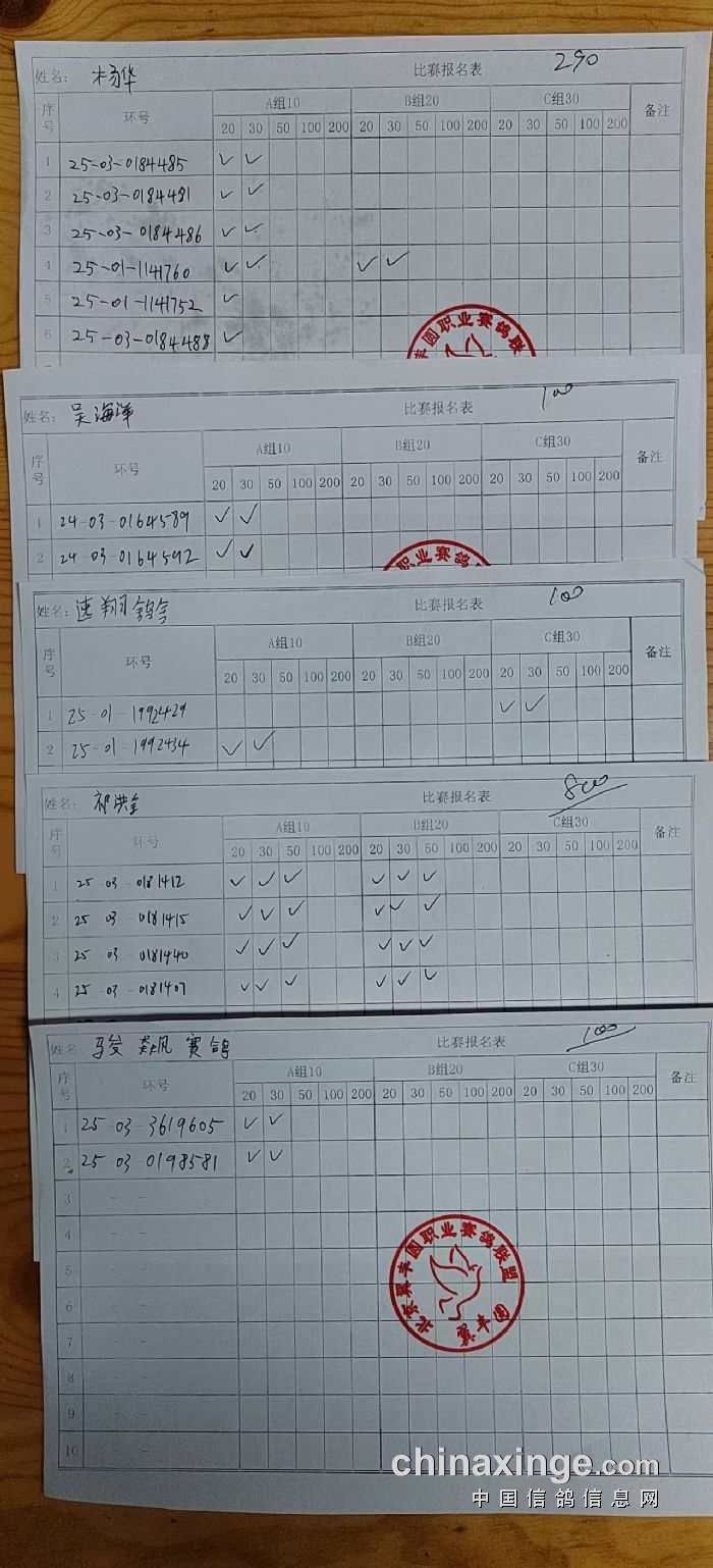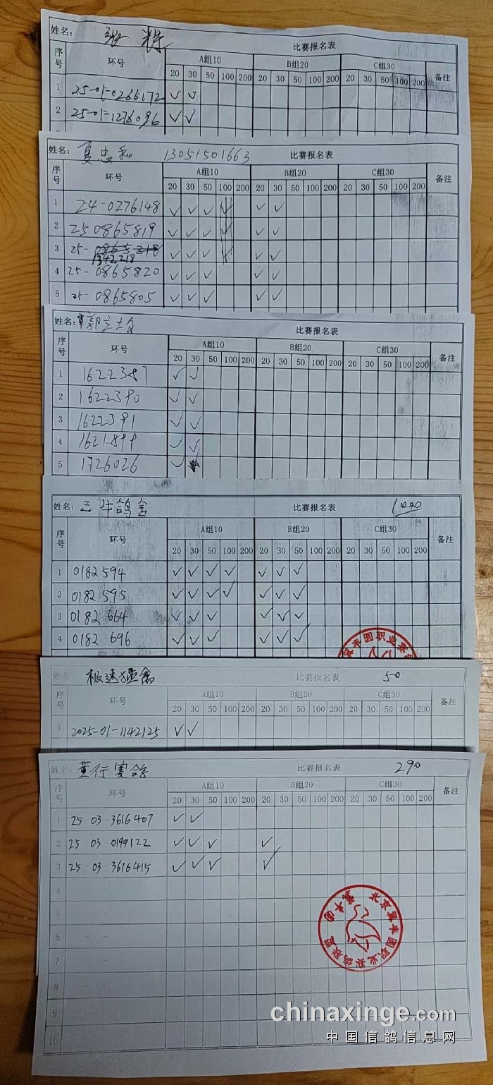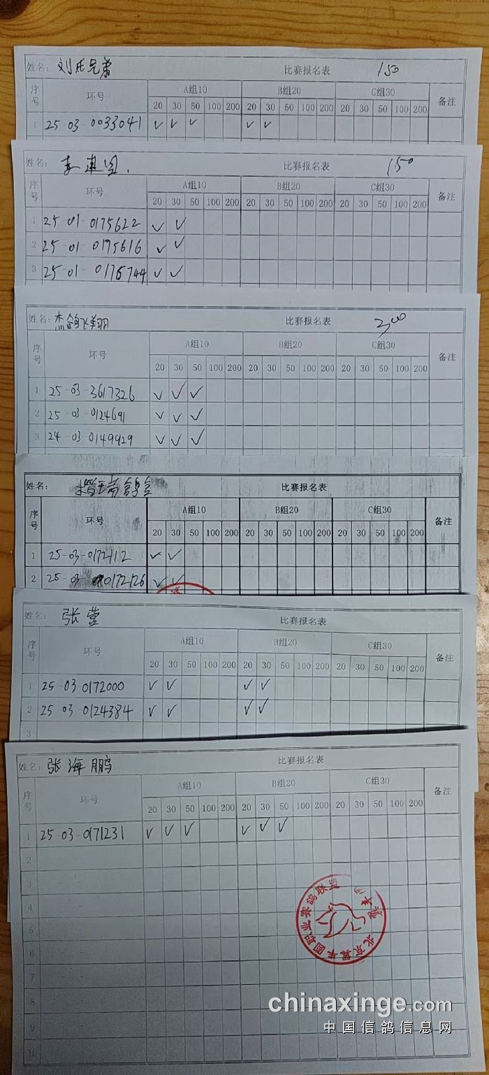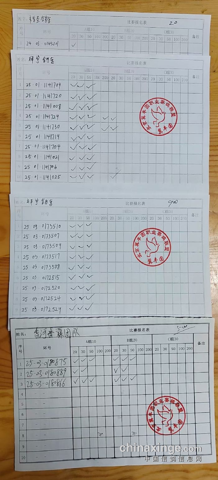 通州区信鸽协会2025年11月26日500公里现场参赛原单