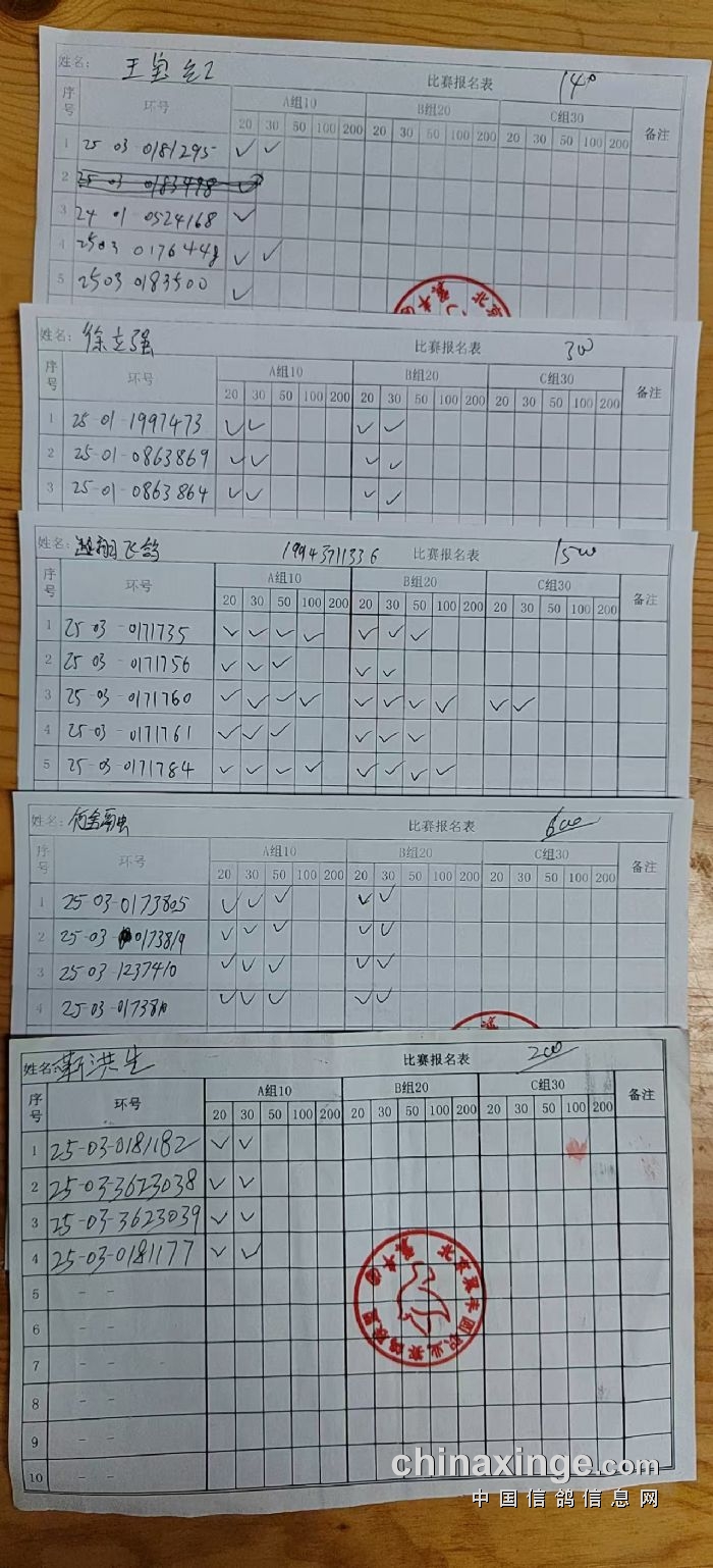 通州区信鸽协会2025年11月26日500公里比赛现场参赛临时成绩