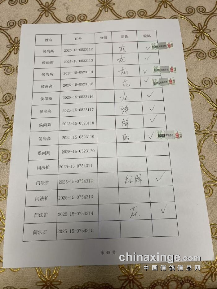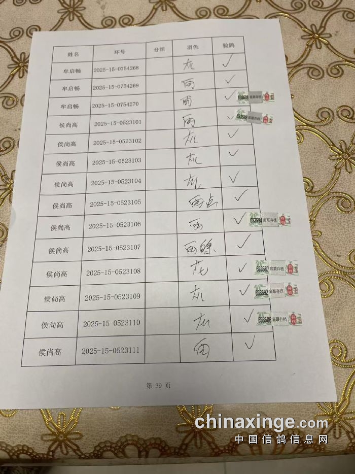 嘉祥县信鸽协会2025年秋季特比环验鸽清单