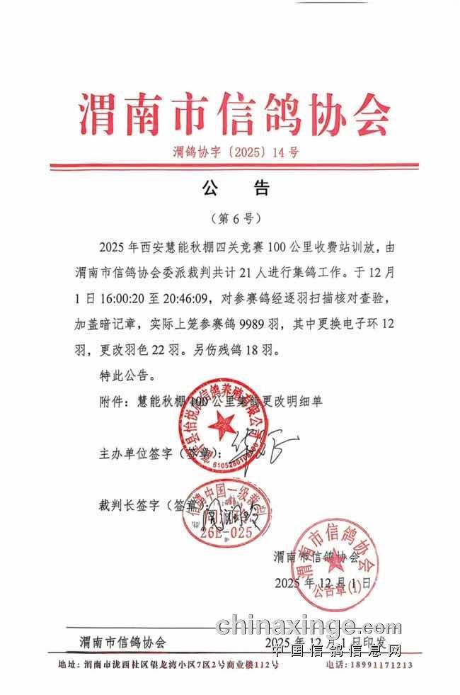 根据陕西威奇公棚2025年秋季竞赛规程安排,本届100公里收费站训放已于近日顺利完成集鸽工作,并于今日上午顺利开笼。本次训放由中国信鸽信息网全程监督,渭南市信鸽协会委派裁判组现场执裁,确保训放工作公开、公平、公正。