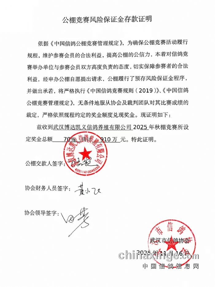武汉博达凯义信鸽养殖有限公司2025年秋棚三方资金共管公告