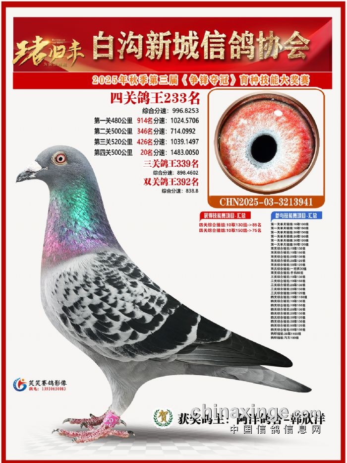 2025年秋季第三届争锋夺冠育种技能大赛环四关综合临时成绩(按排名)