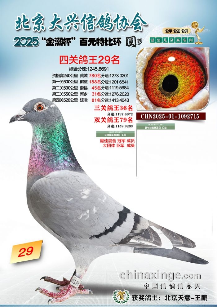 2025年“金洲杯”百元特比鸽王照片1-50名