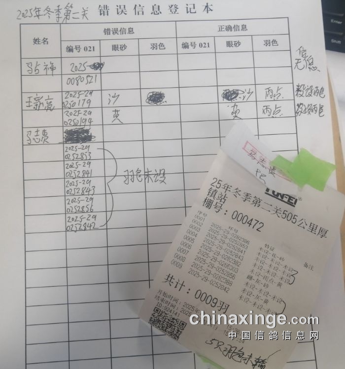 吴忠市信鸽协会2025年冬季第一关300公里合水站错误信息发布