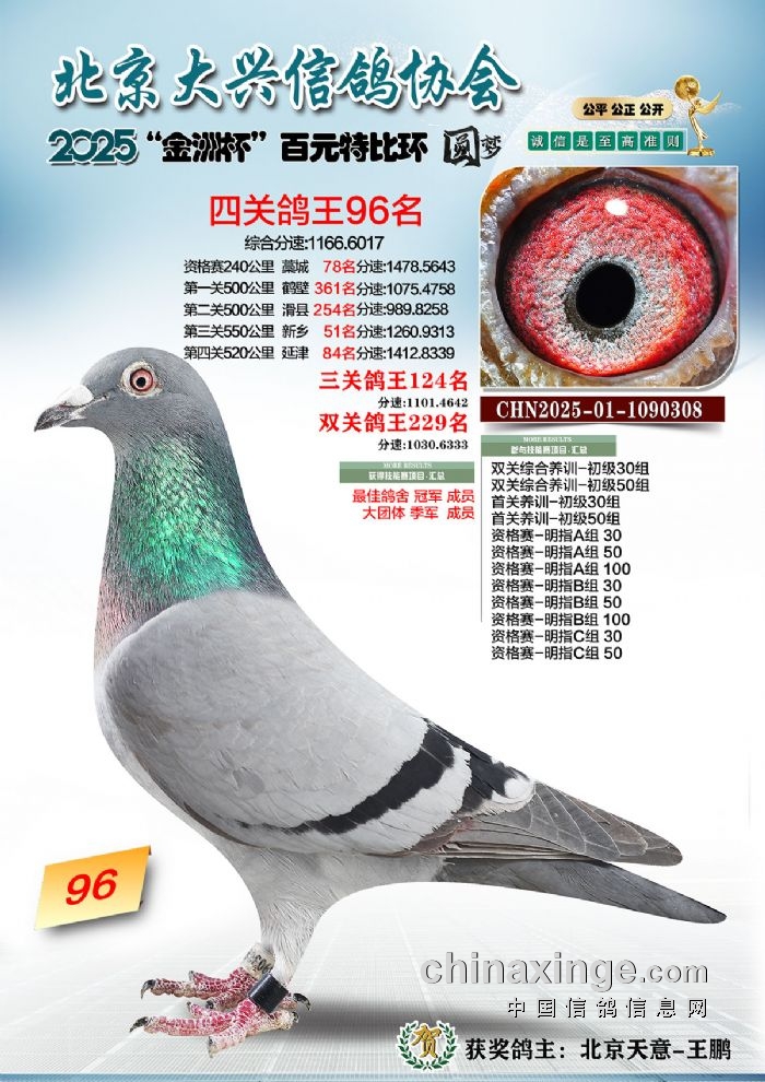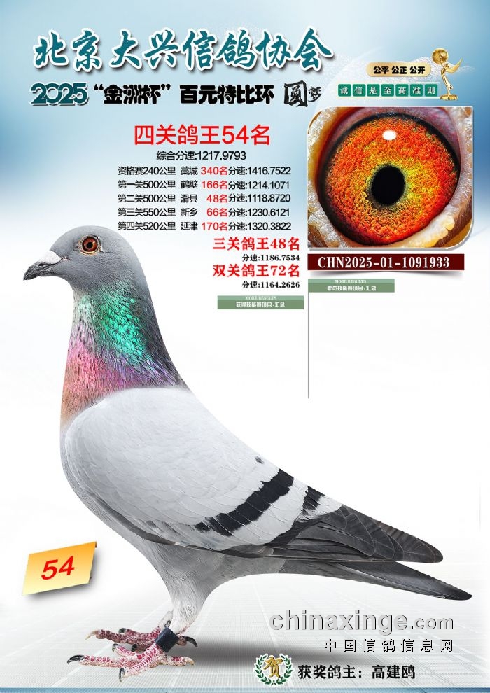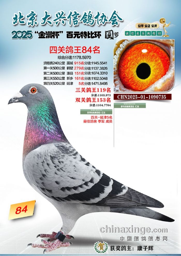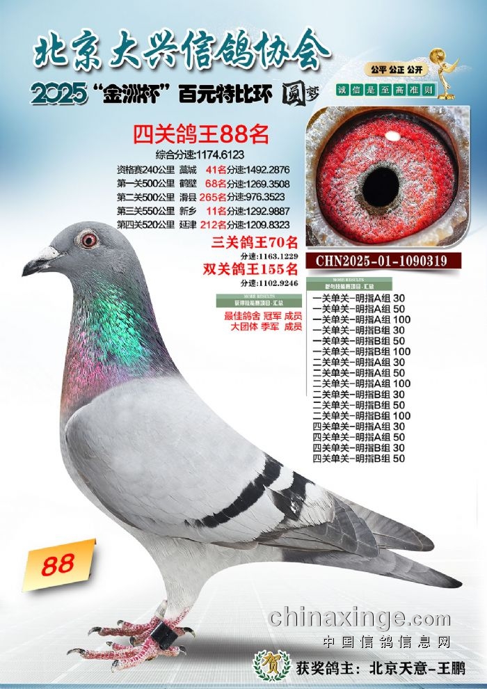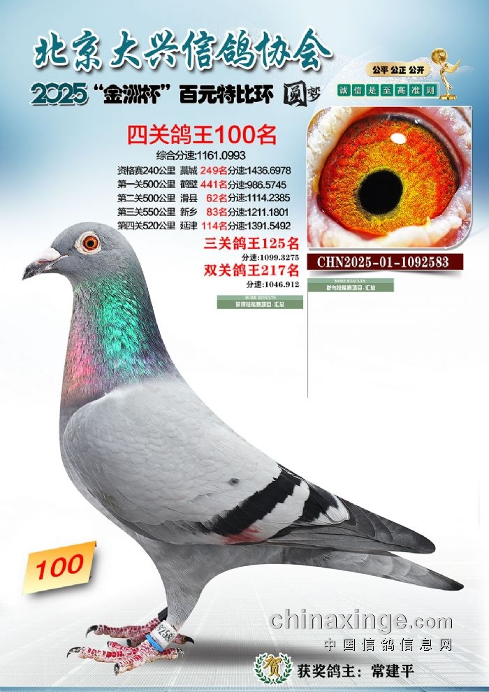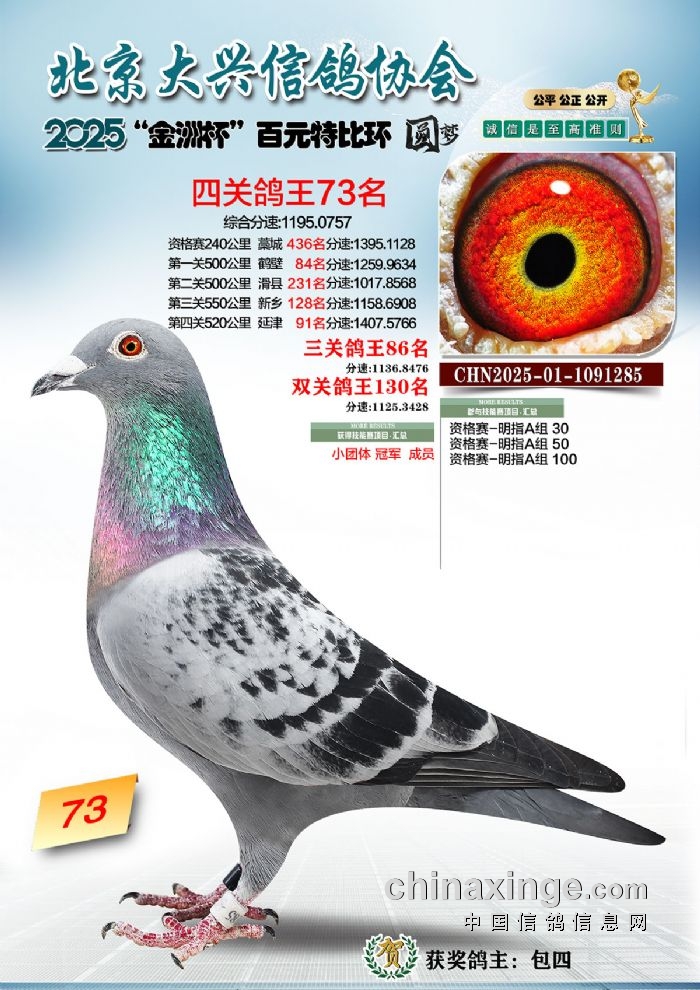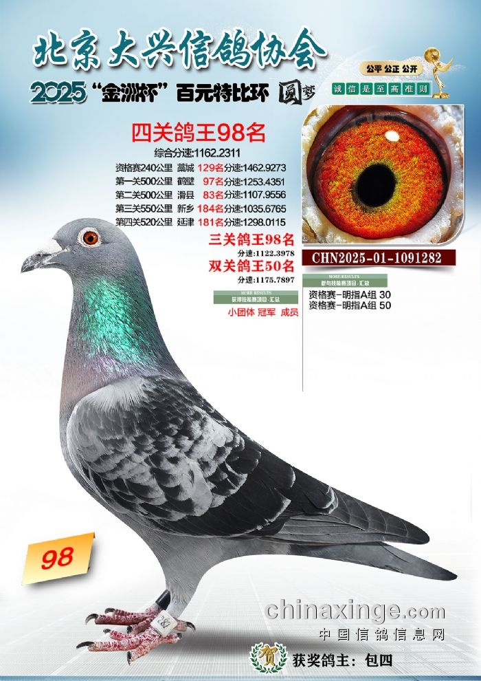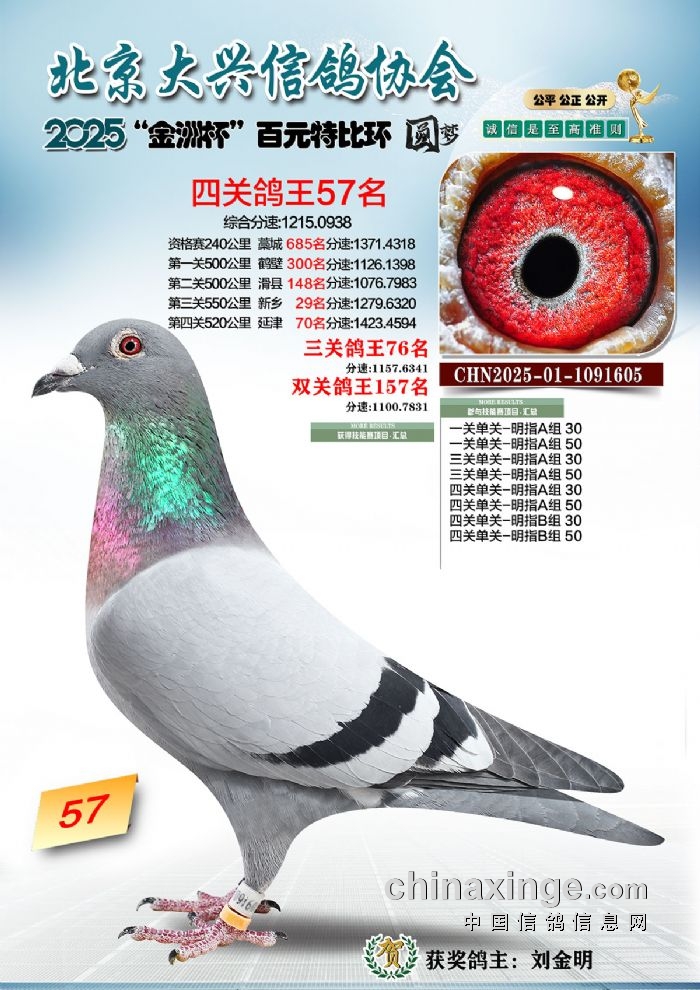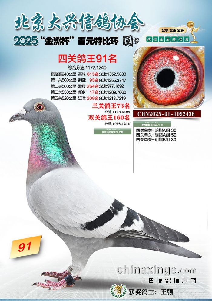 2025年“金洲杯”百元特比鸽王照片51-100名