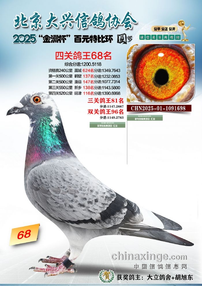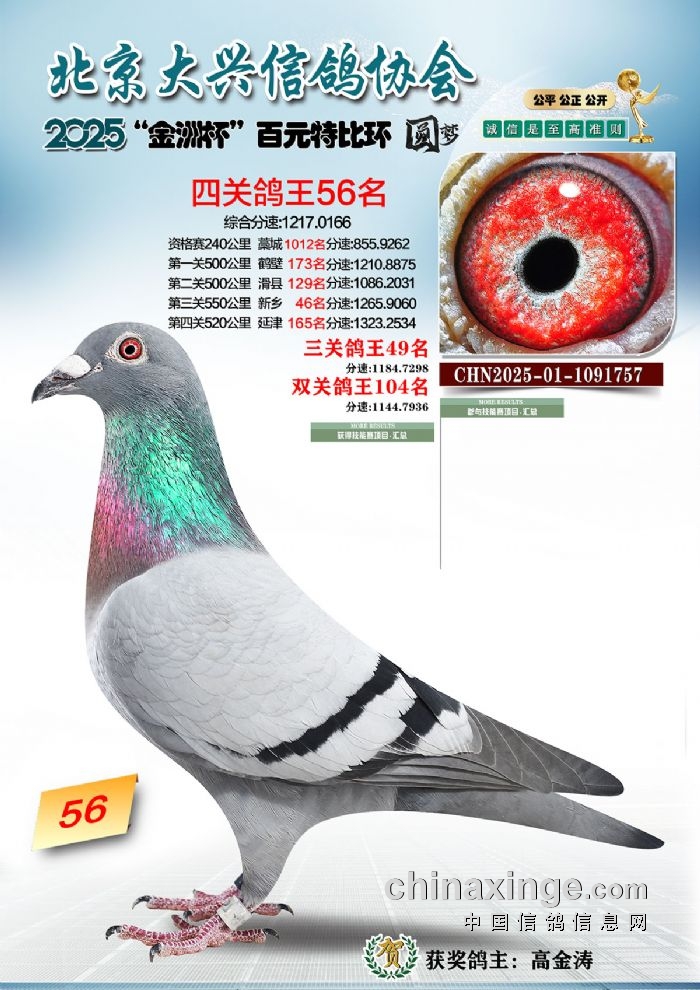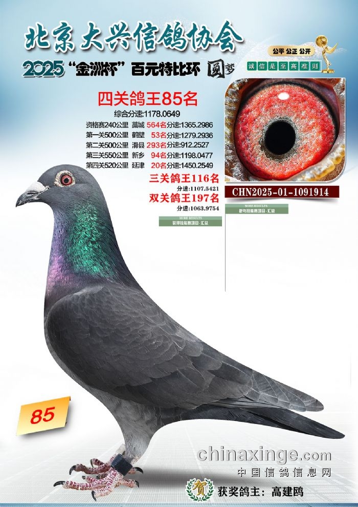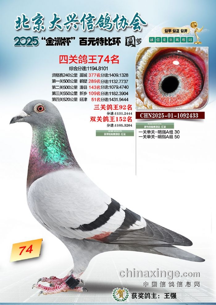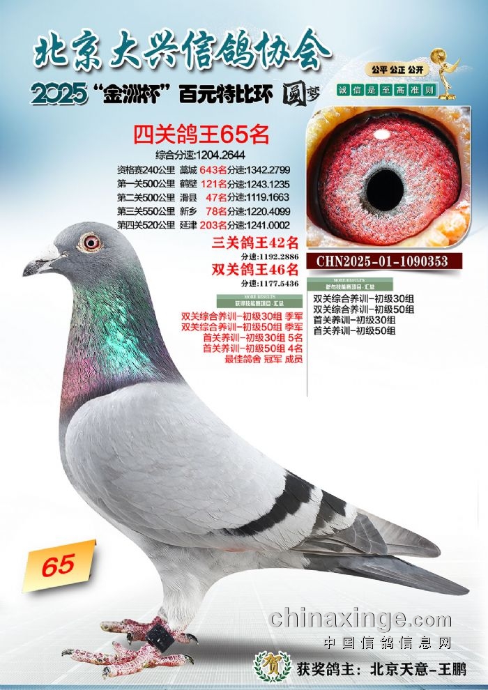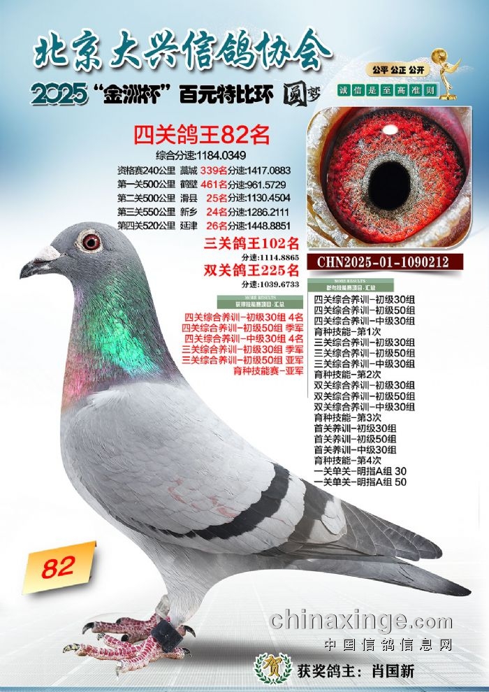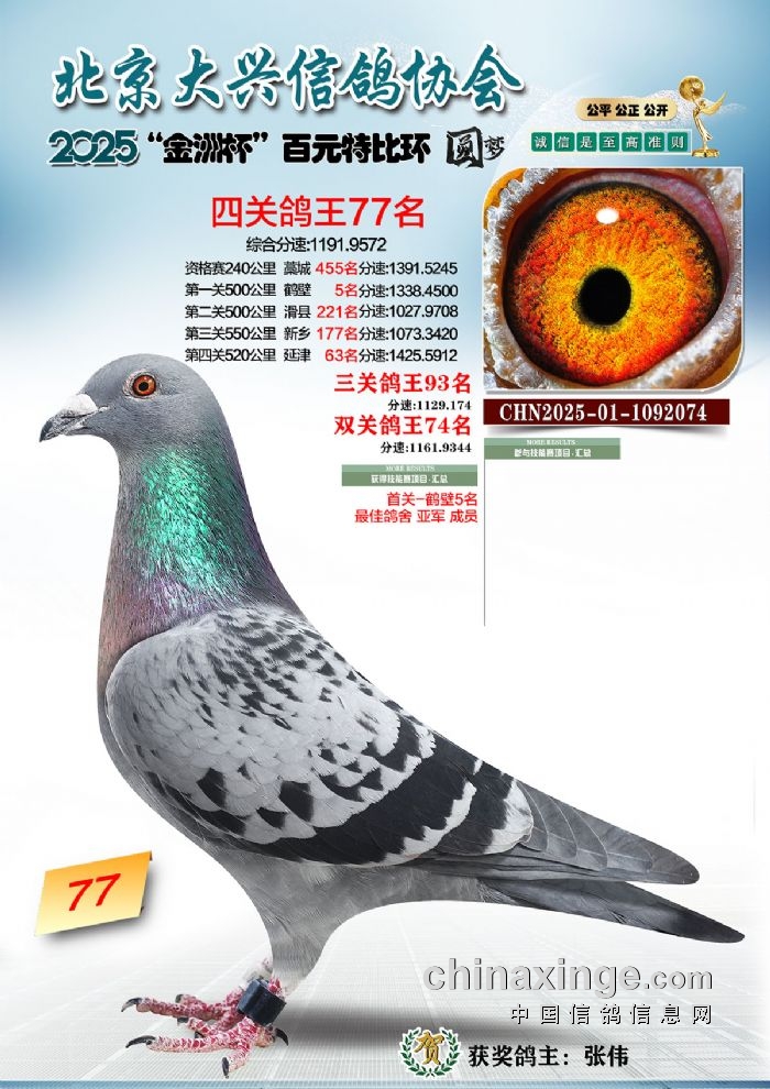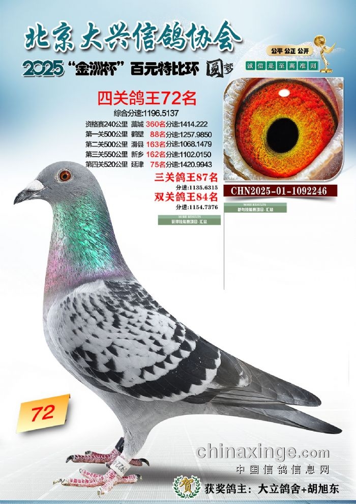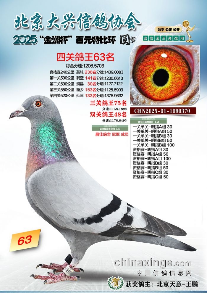 2025年“金洲杯”百元特比鸽王照片51-100名