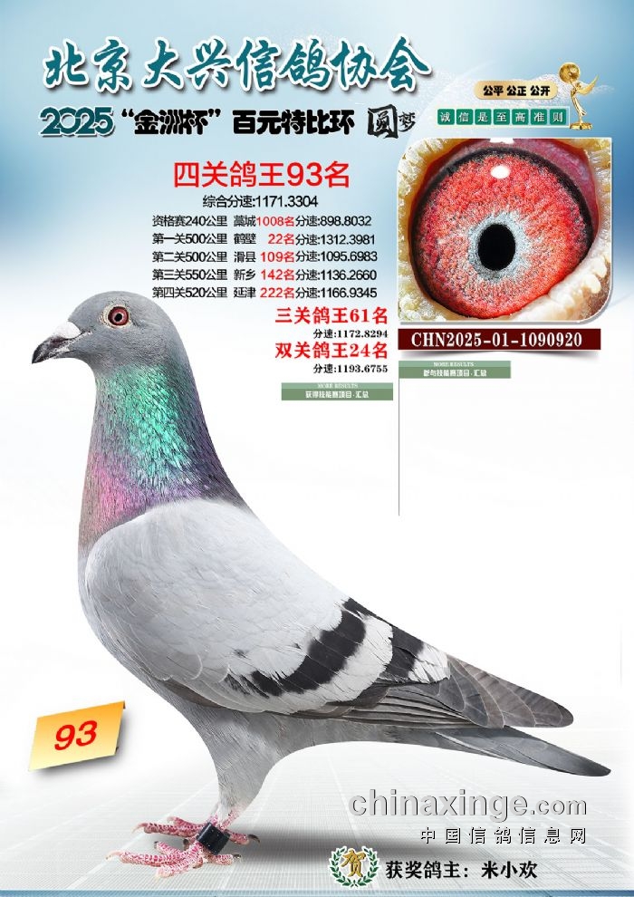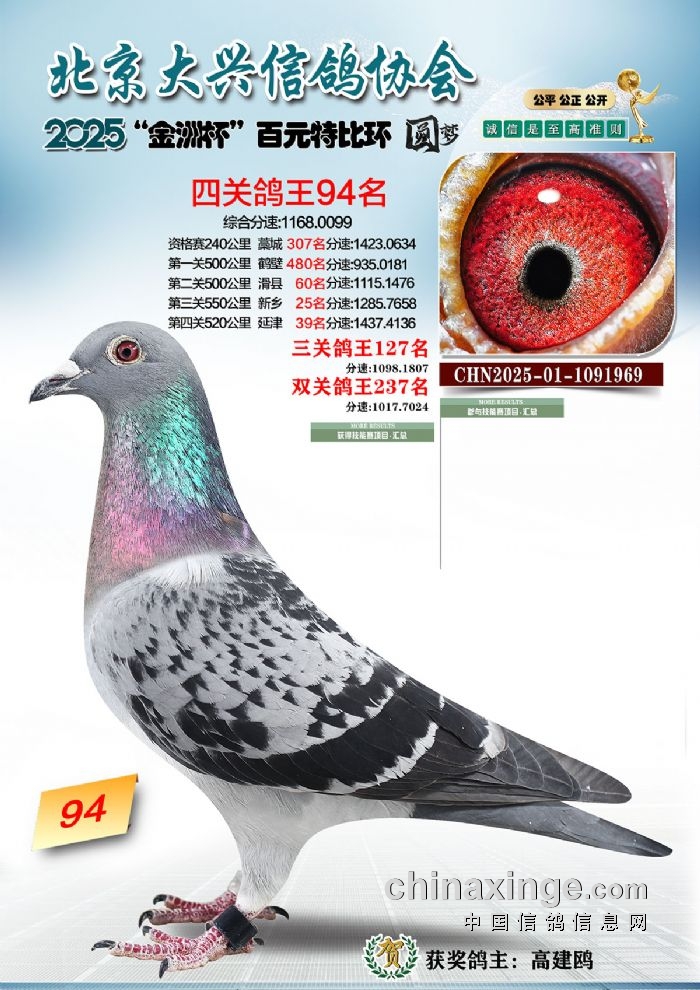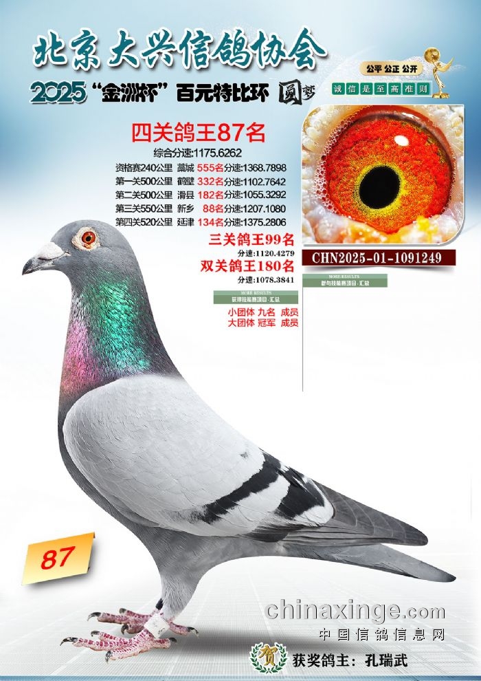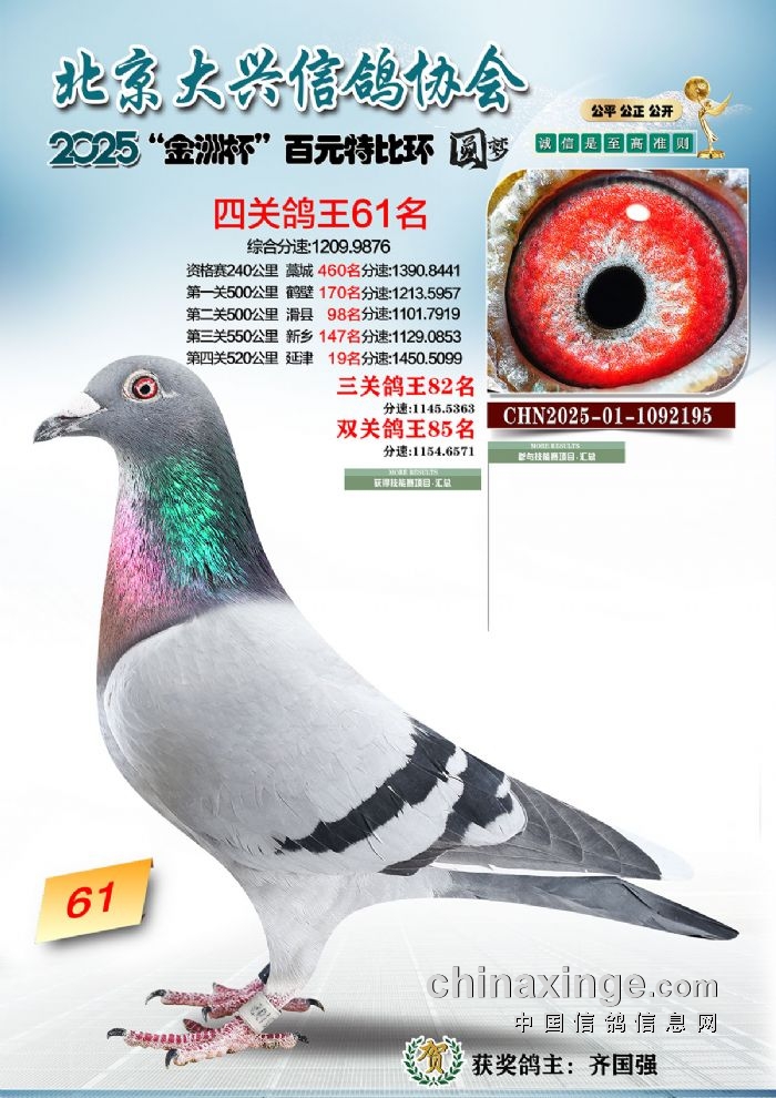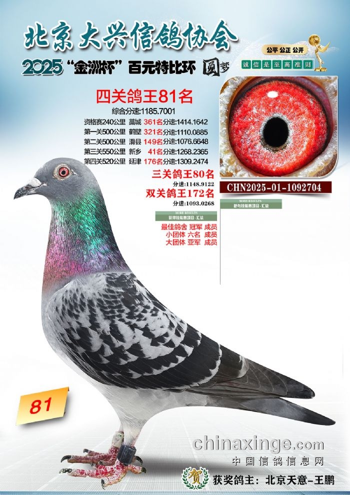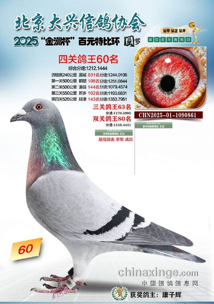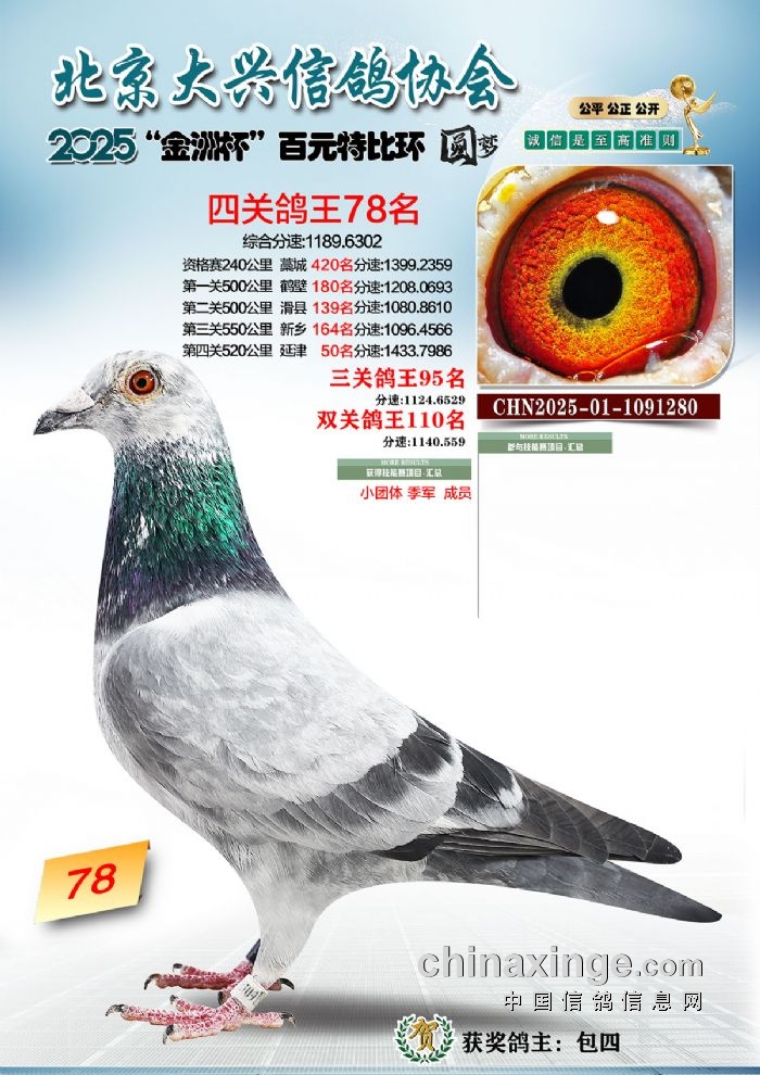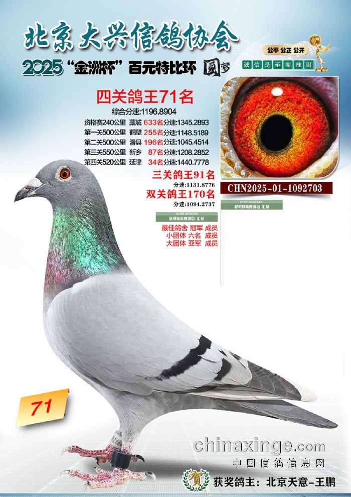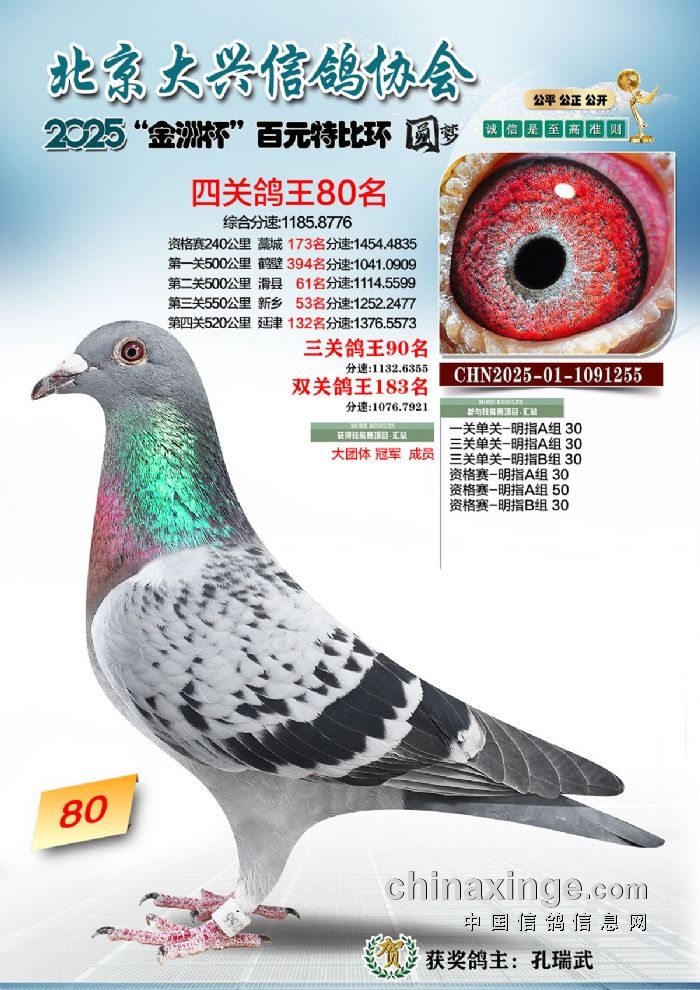 2025年“金洲杯”百元特比鸽王照片51-100名