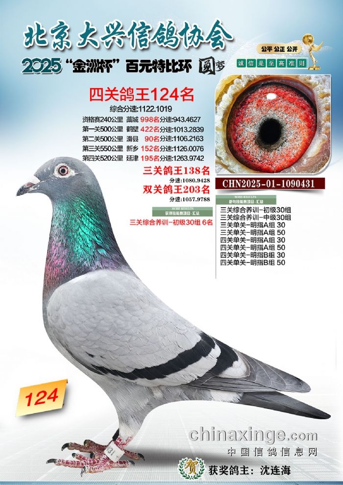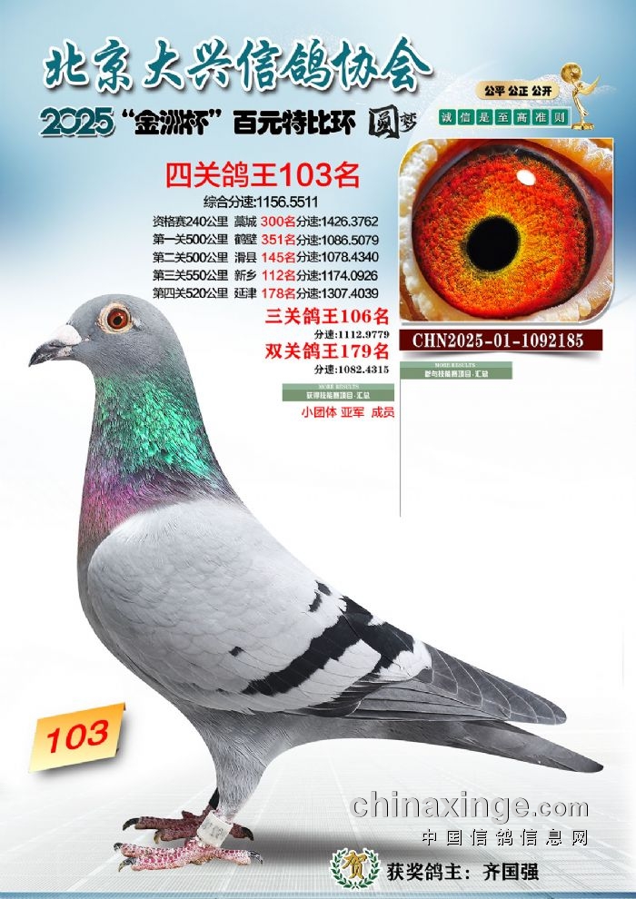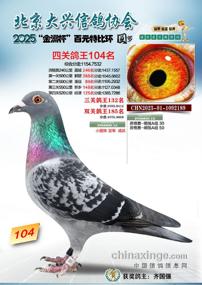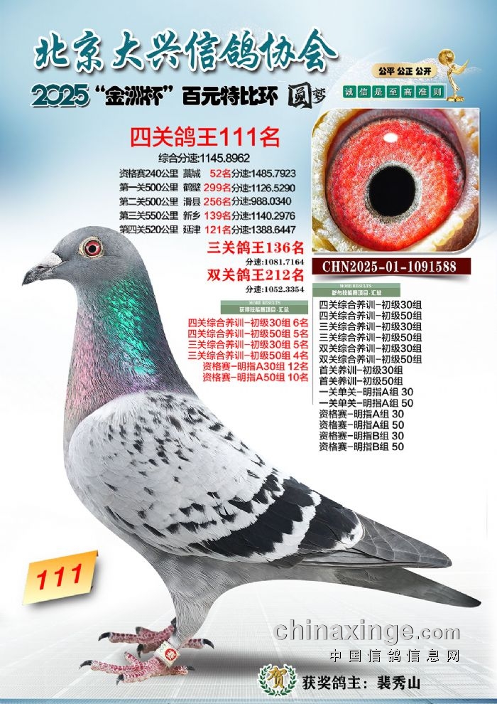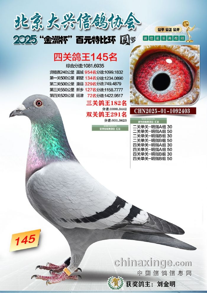 2025年“金洲杯”百元特比鸽王照片101-150名
