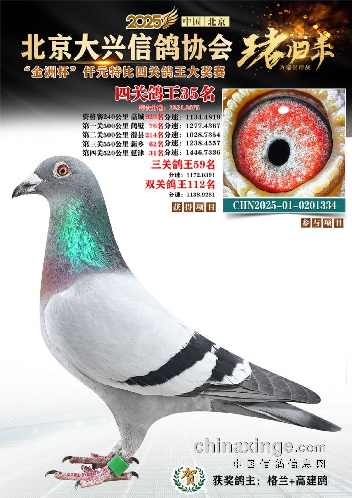 2025年“金洲杯”千元特比鸽王照片1-50名